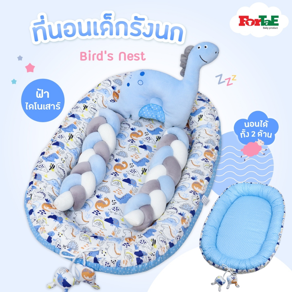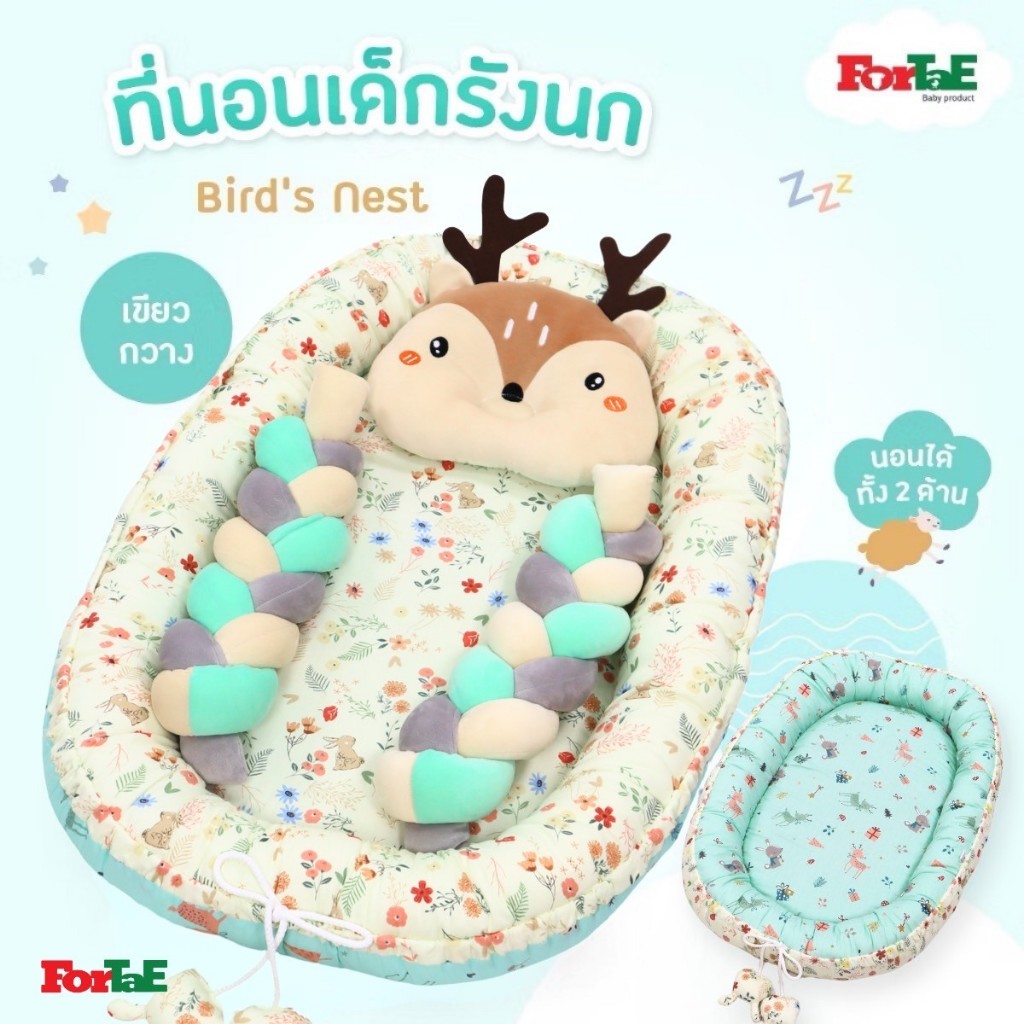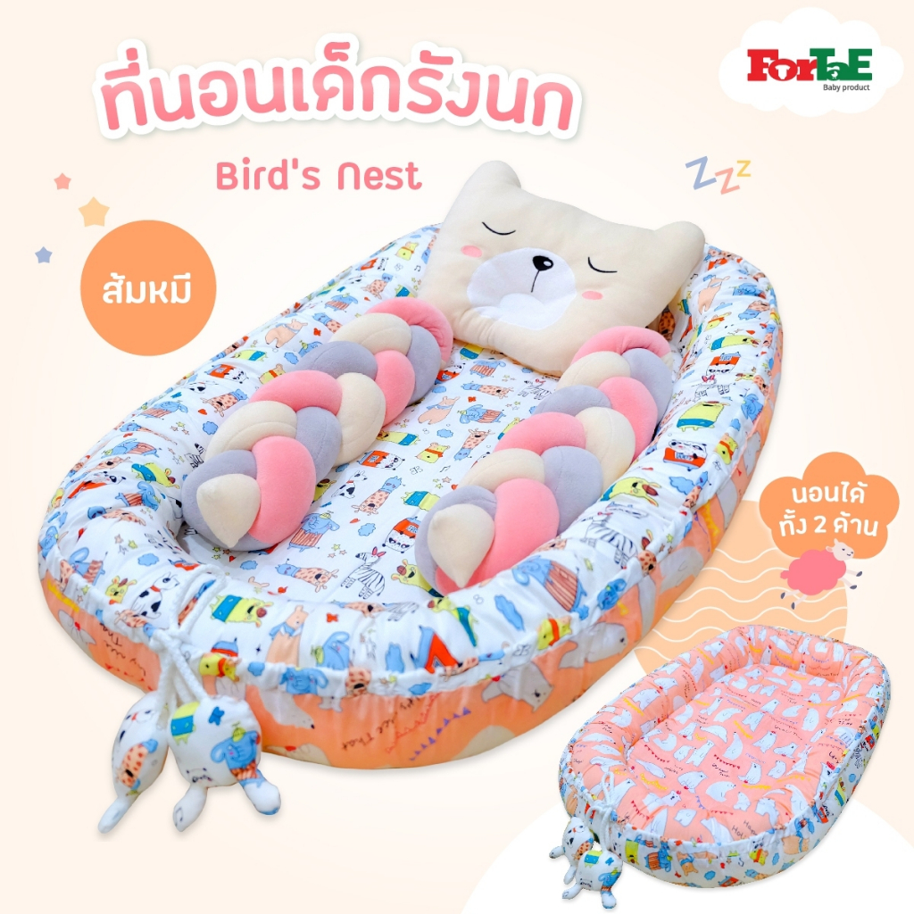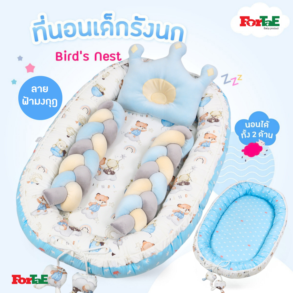 Fortae(ฟอร์เต้) ที่นอนเด็ก รังนกBird's Nest ที่นอนเด็กแรกเกิดมีขอบกันตก ที่นอนเด็กอ่อนนอนได้2ด้าน