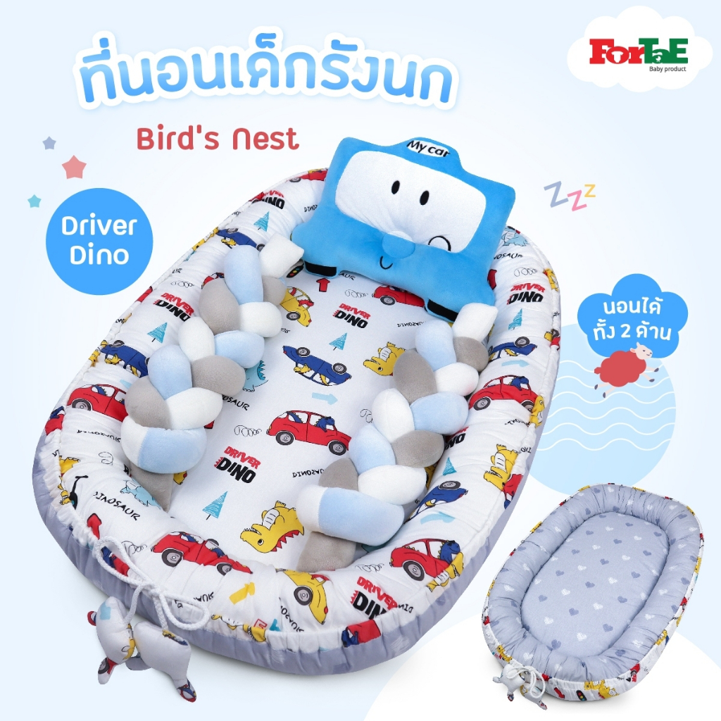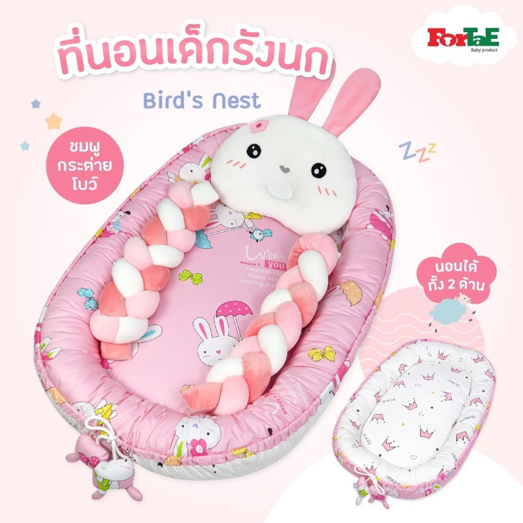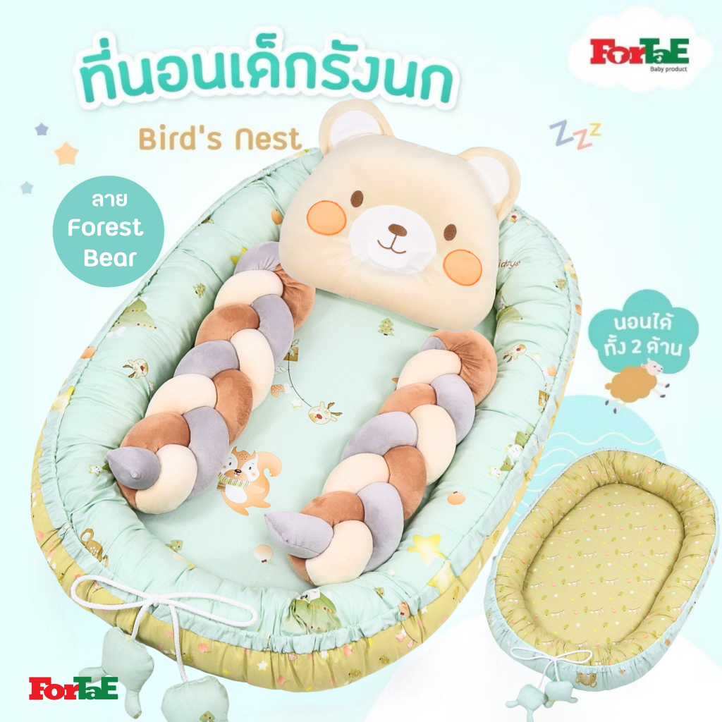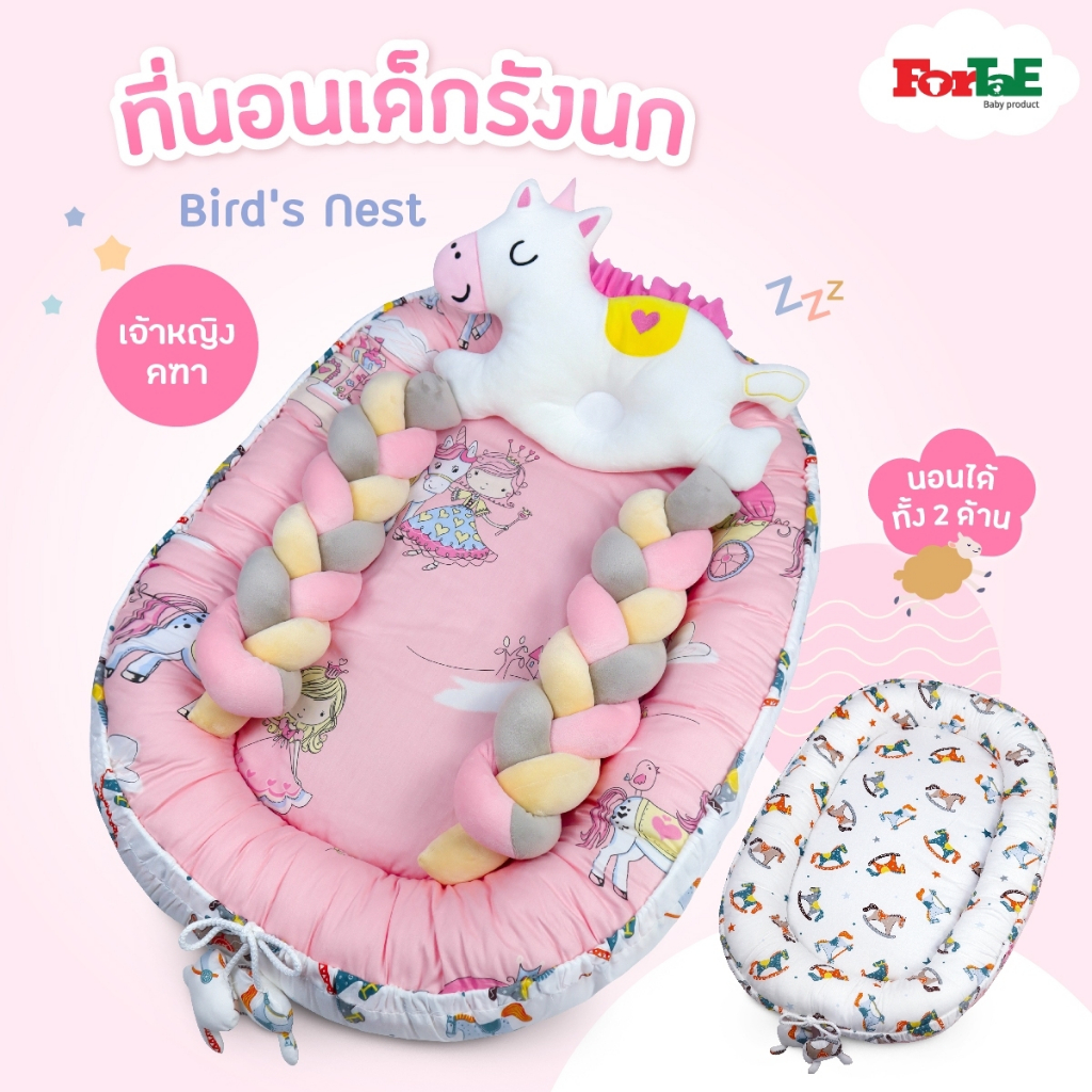 Fortae(ฟอร์เต้) ที่นอนเด็ก รังนกBird's Nest ที่นอนเด็กแรกเกิดมีขอบกันตก ที่นอนเด็กอ่อนนอนได้2ด้าน
