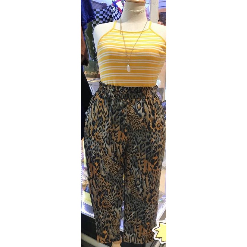กางเกงไซส์ใหญ่ ผ้ายืด พิมพ์ลายเสือ ผ้านำเข้าจากญี่ปุ่น เนื้อดีมาก