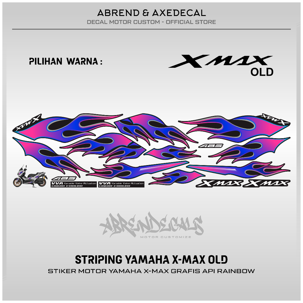 Xmax Old Rainbow Flame Graphic Striping / Yamaha X-max Motorcycle Stickers Custom Design Variation List / Stock Decals