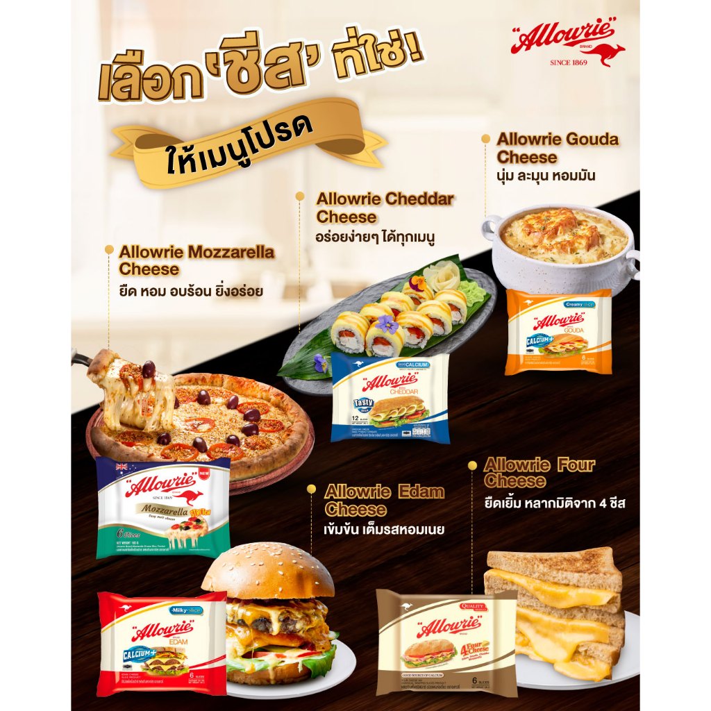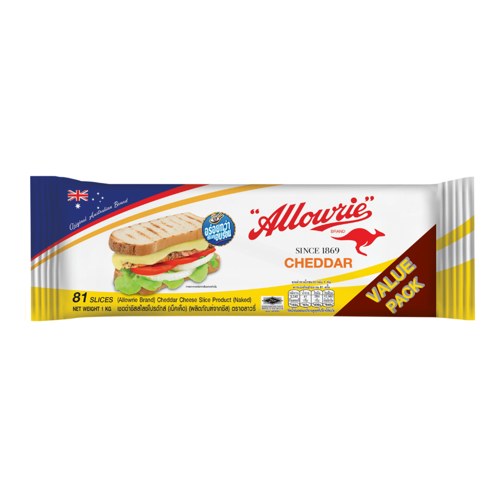 Allowrie Cheese อลาวรี่เชดด้าชีสแผ่น 81สไลซ์ Naked 1กิโลกรัม