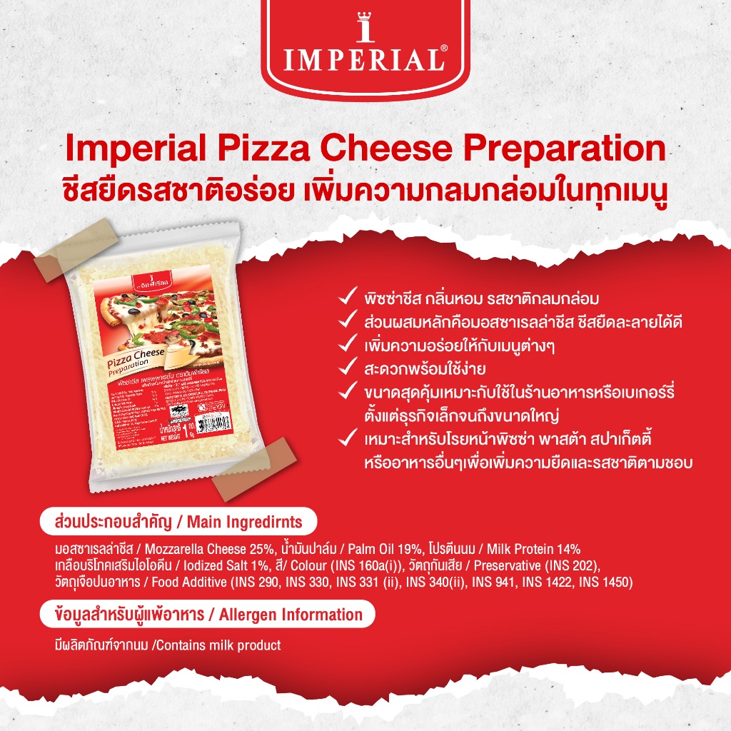 IMPERIAL Cheese อิมพีเรียลพิซซ่าชีสเพรพพาเรชั่น ขนาด 1 กก