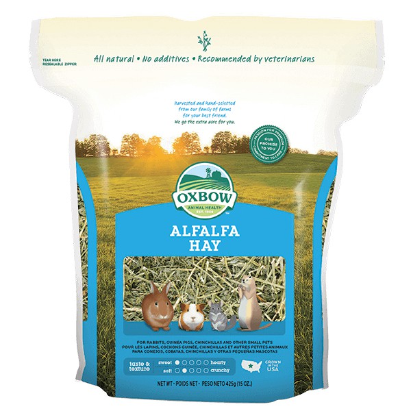 Oxbow Alfalfa Hay หญ้าอัลฟาฟ่า (15oz) (40oz) เป็นหญ้าที่ให้พลังงานสูง มีโปรตีนและแคลเซียมสูงกว่าหญ้าชนิดอื่นๆ