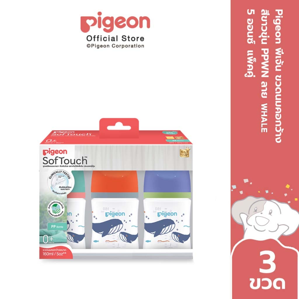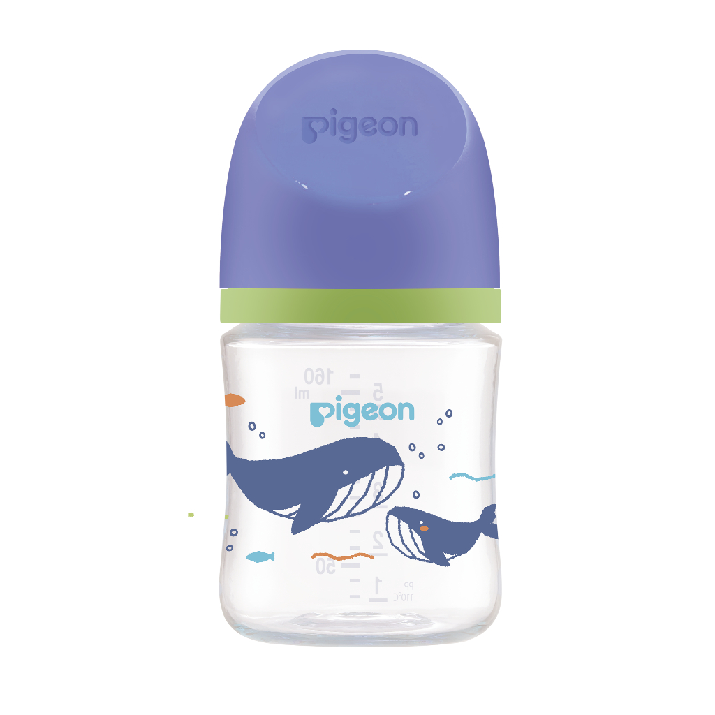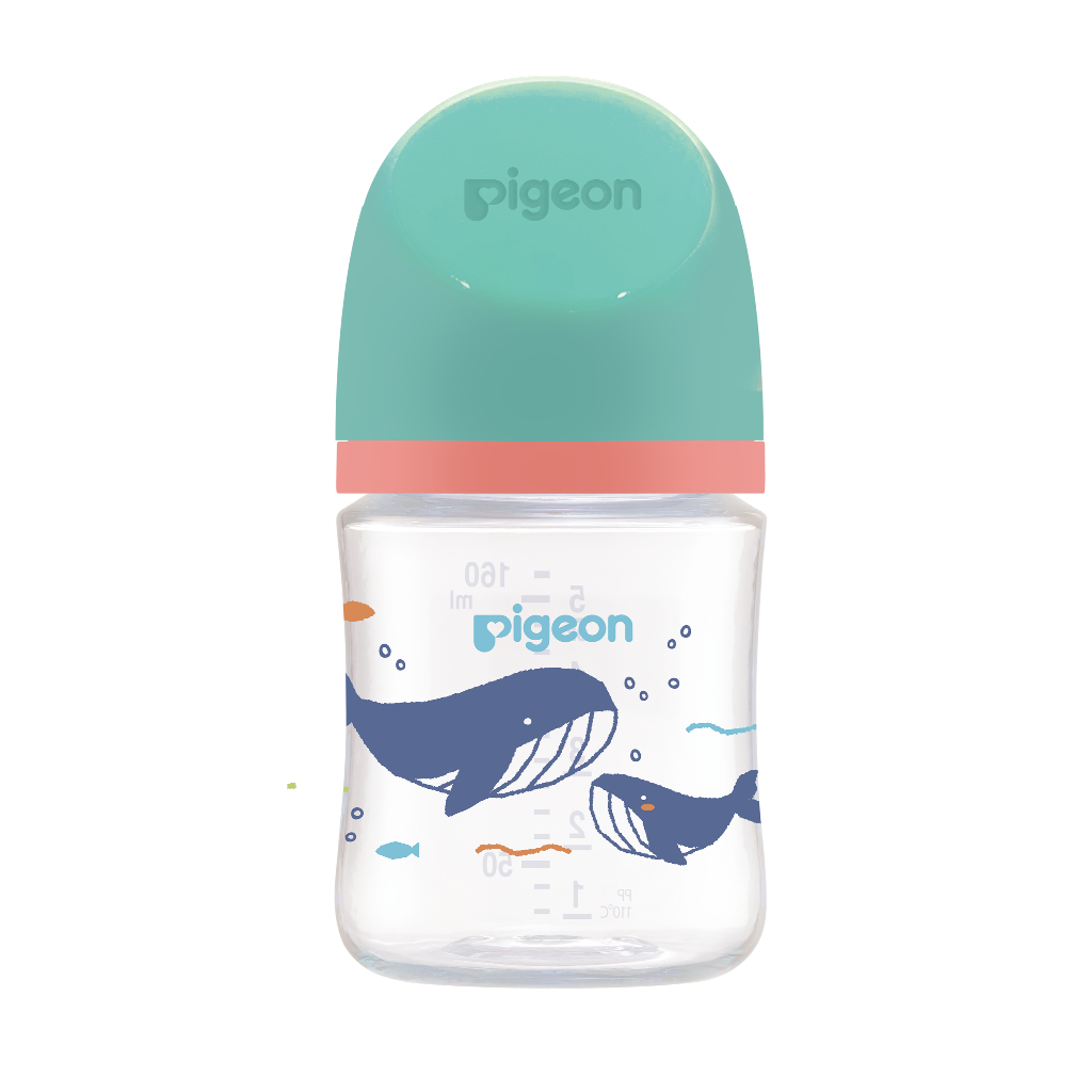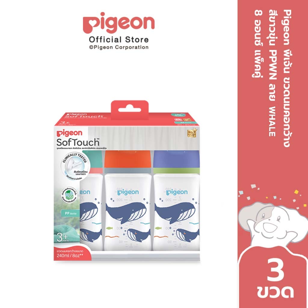 [2 ฟรี1] Pigeon พีเจ้น ขวดนมคอกว้างสีขาวขุ่น PPWN ลาย WHALE ขนาด 5ออนซ์ และ 8ออนซ์