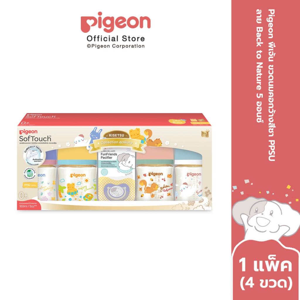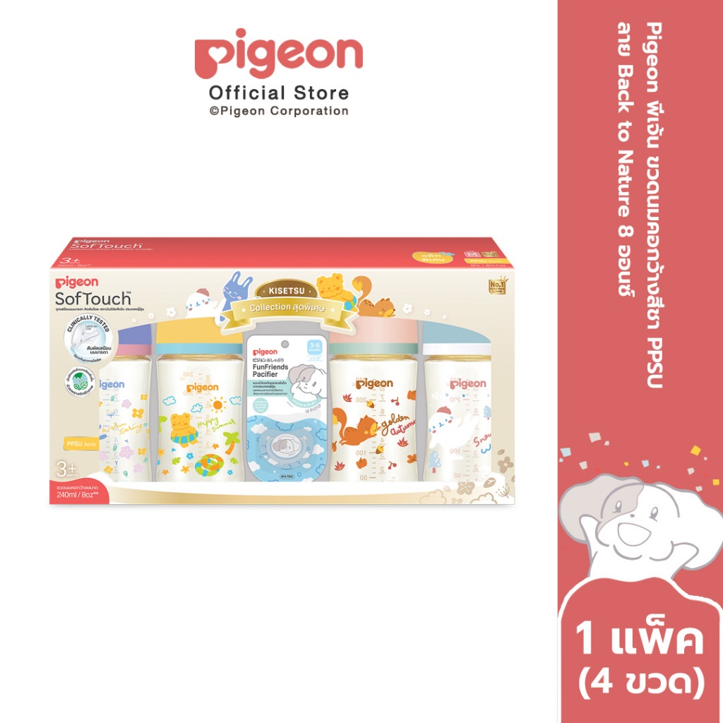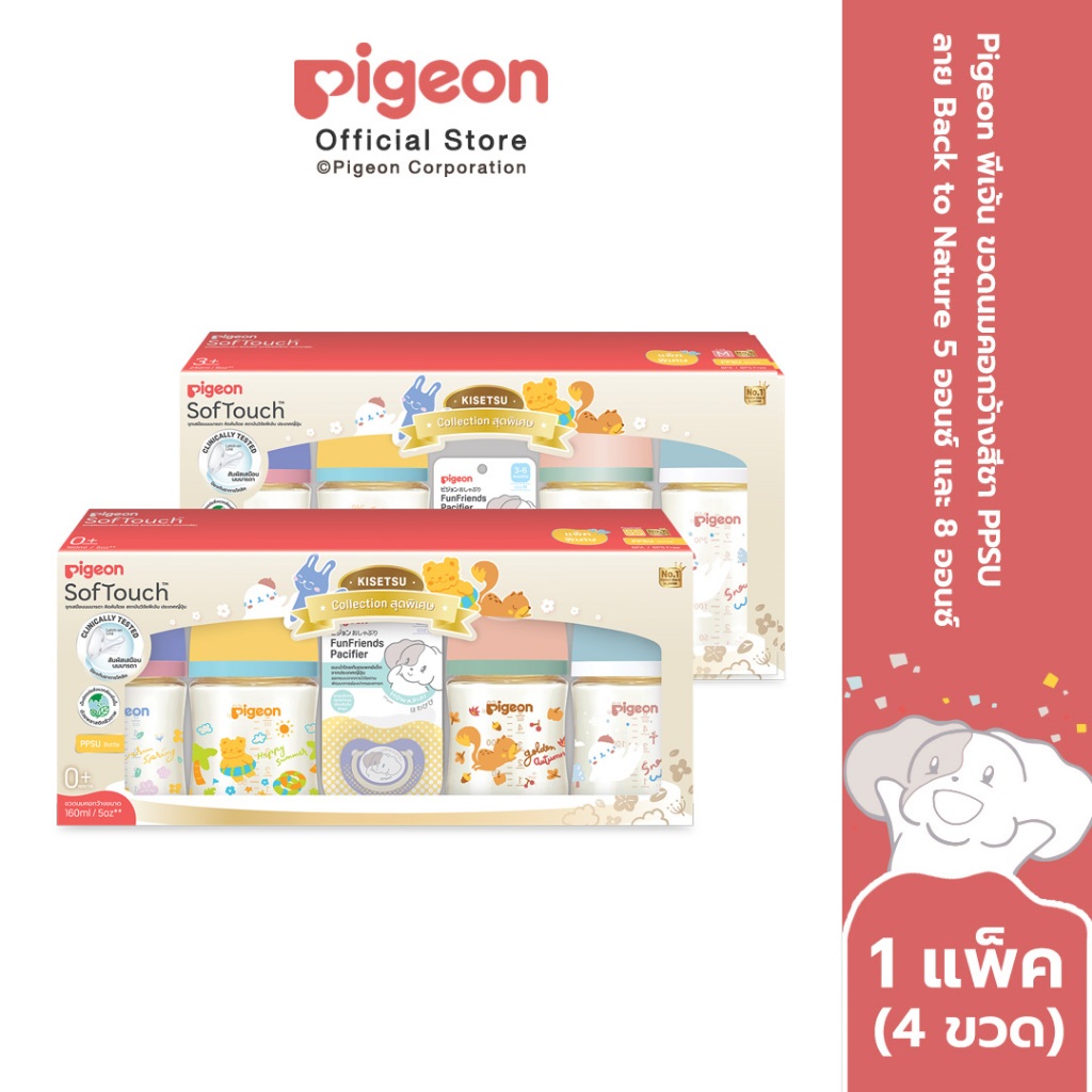 Pigeon พีเจ้น ขวดนมคอกว้างสีชา PPSU ลาย Back to Nature 5ออนซ์ และ 8ออนซ์ แพ็ค 4 ขวด