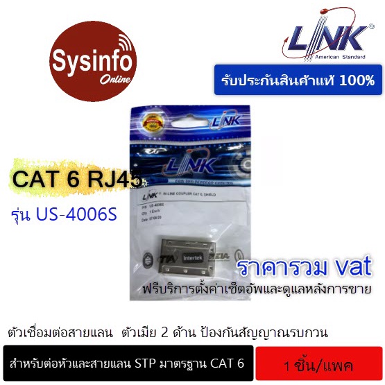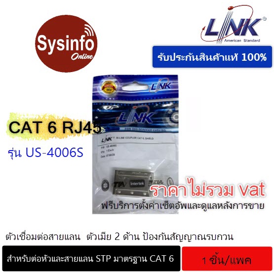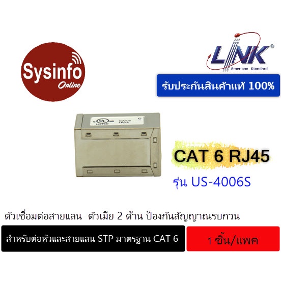 ตัวต่อสายแลนมี Shield หุ้ม ป้องกันสัญญาณรบกวน ยี่ห้อ LINK รุ่น US-4006S CAT 6, RJ45 Jack to RJ45 Jack Splice