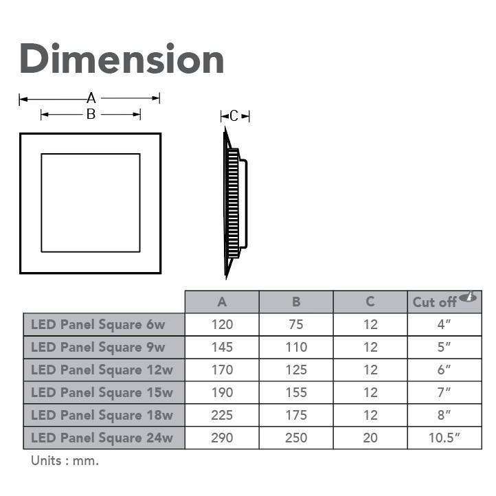LED Panel Square 6, 9, 12, 15w โคมพาเนลไลท์แอลอีดี หน้าเหลี่ยม รุ่นมาตรฐาน