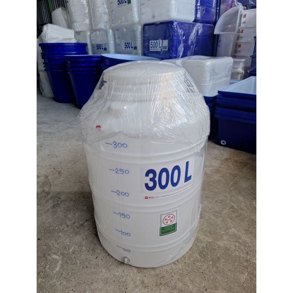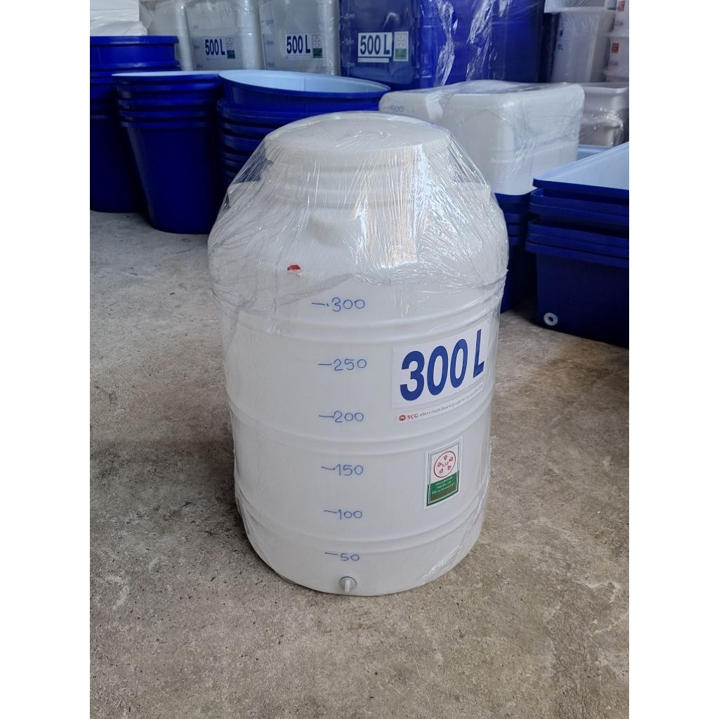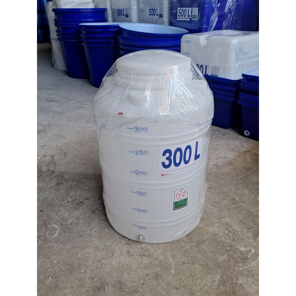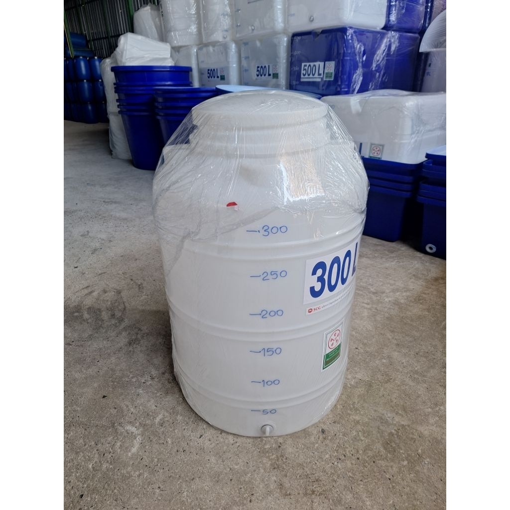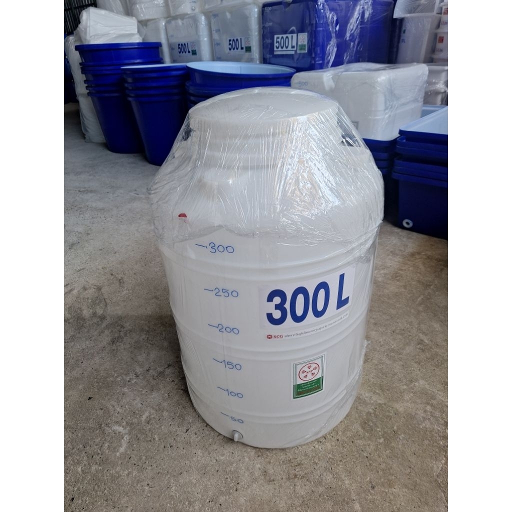 ถังน้ำ300ลิตรผลิตใหม่มือ1 สีขาว ผลิตจากเม็ดพลาสติกเกรดA ของSCGมีขีดบอกระดับน้ำสูง110ซม.ปากกว้าง40ซม.ตัวถังกว้าง80ซม.