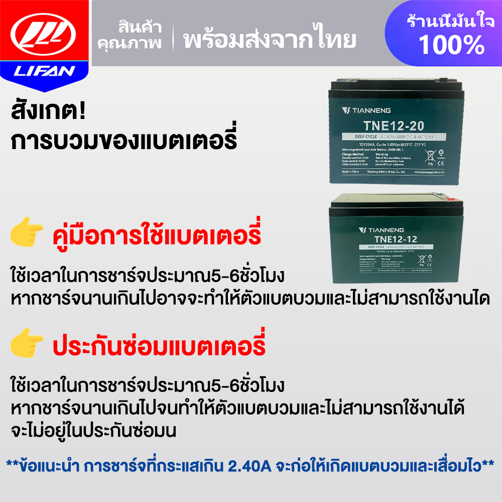 LIFAN แบตเตอรี่แห้งTianNeng12V 12ah แบตเตอรี่จักรยานไฟฟ้า รถสามล้อไฟฟ้า แบตเตอรี่ตะกั่วกรด แบตเตอรี่
