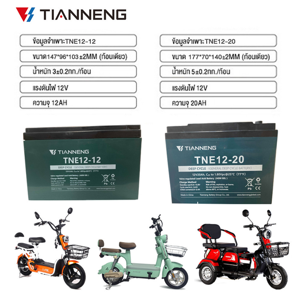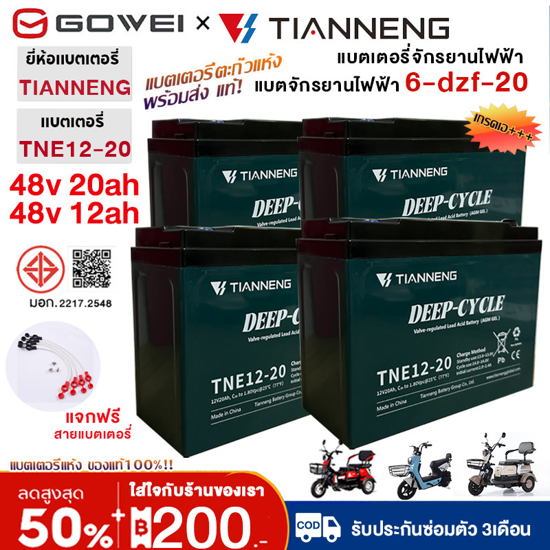 GOWEI แบตเตอรี่จักรยานไฟฟ้า48v แบตเตอรี่ตะกั่วกรด 20ah 12ah แบตเตอรี่ 48โวลล์ 6-dzf-20แบตแห้งแท้ แบตเตอรี่รถไฟฟ้า แถมสาย
