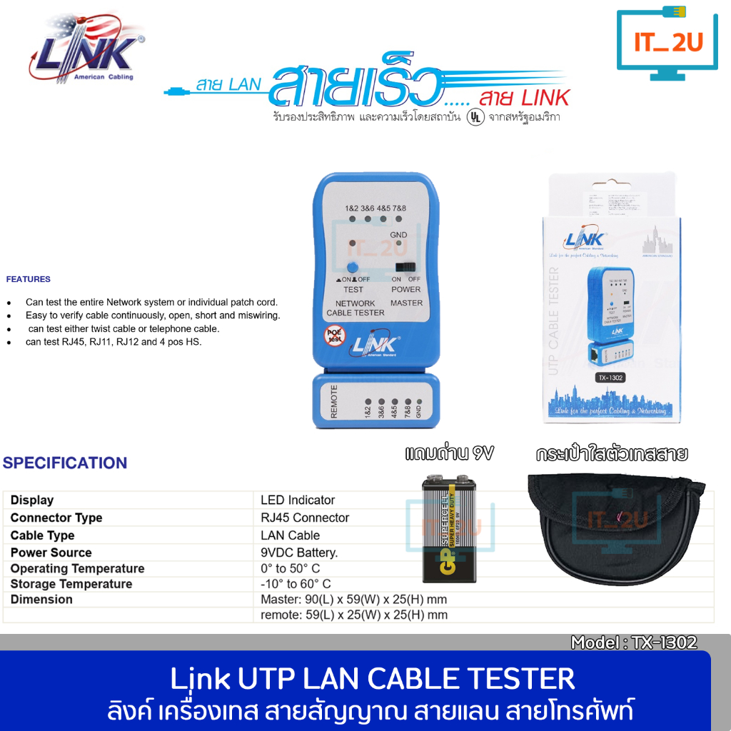 Link TX-1302 UTP Cable tester เครื่องมือเทสสายแลน แม่นยำและรวดเร็ว