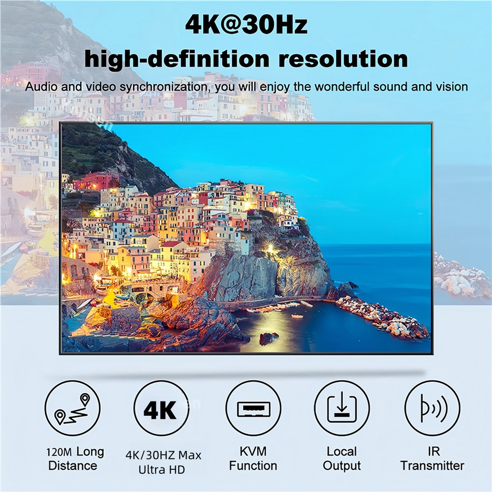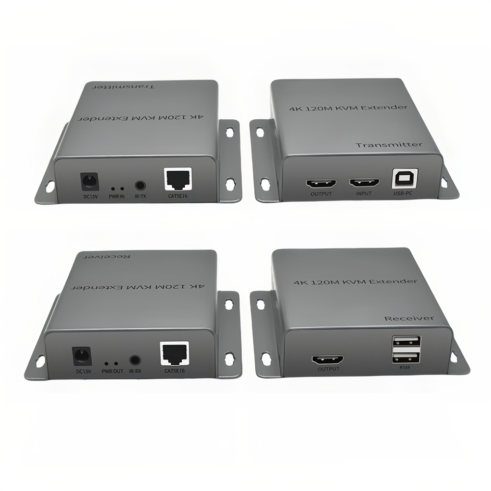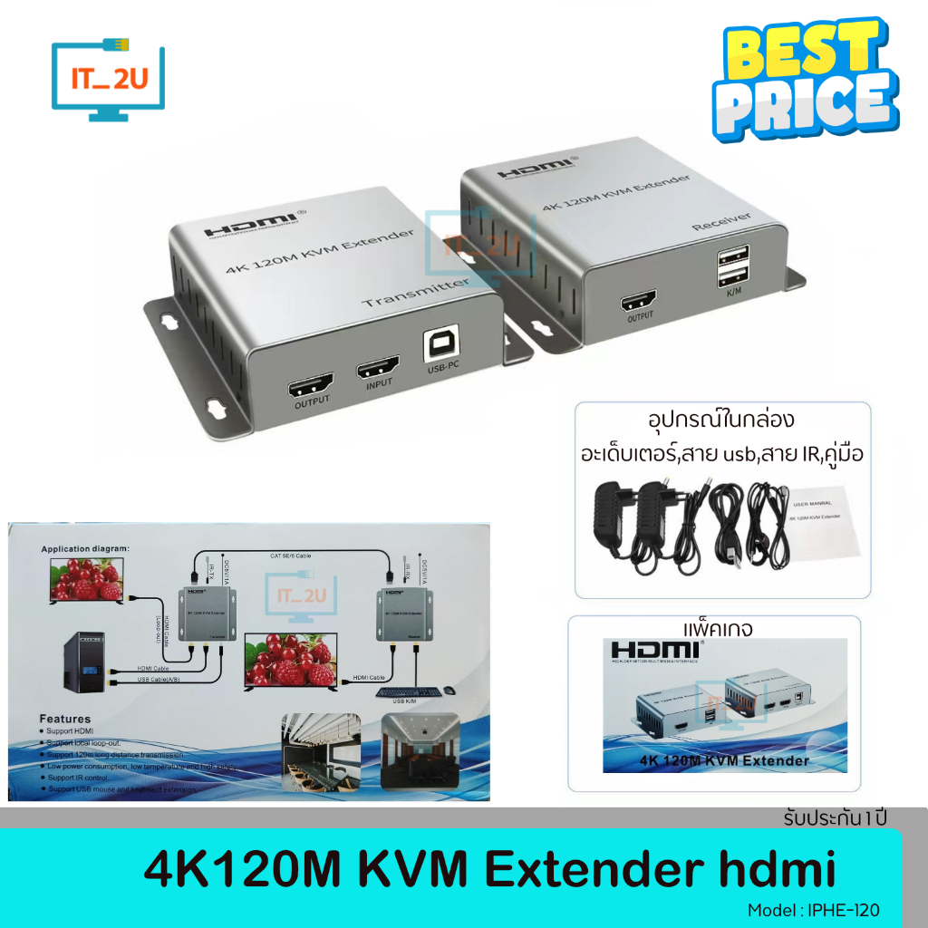 HDMI USB KVM Extender 4K Cat6 120M อุปกรณ์ขยายสัญญาณภาพและเสียง ต่อเมาส์ได้ควบคุมระยะไกล 120 เมตร