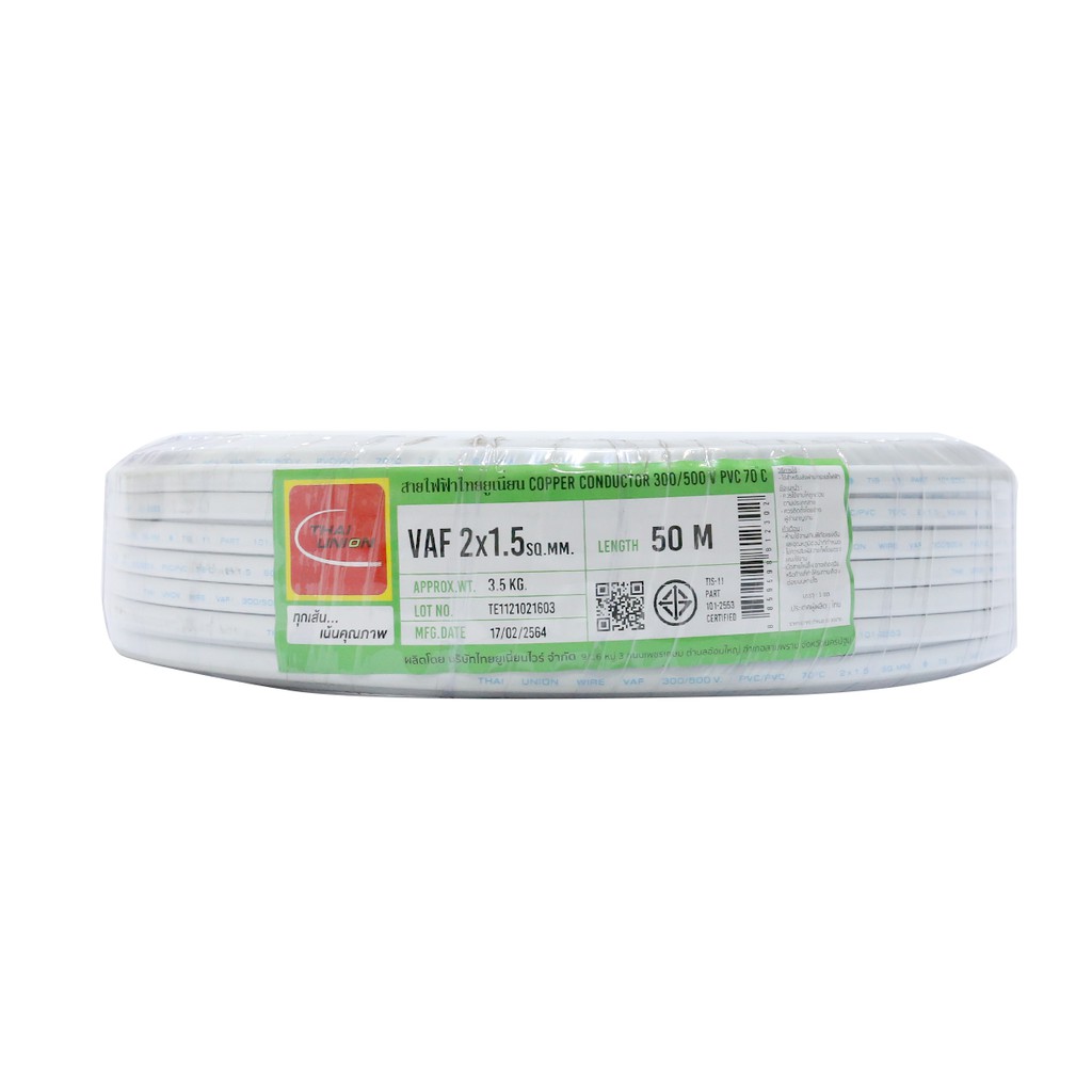 THAIUNION สายไฟ VAF 2x1.5 Sqmm. ยาว 50 เมตร |ROL|