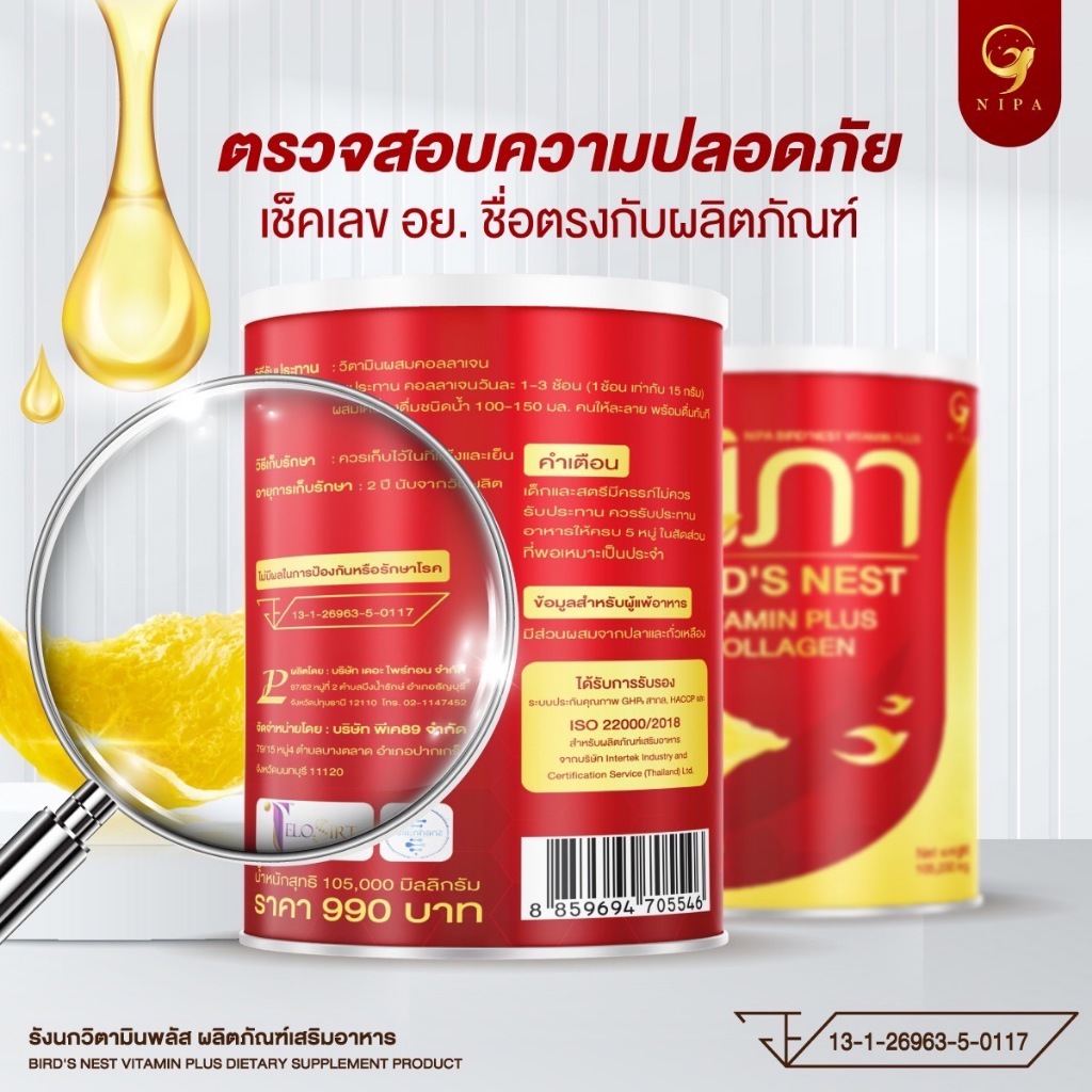 ( นิภา5ป๋อง+5ป๋อง) 5แถม5 นิภาวิตามินบำรุงผิว ฝ้า กระ บำรุงร่างกาย นวัตกรรม telasirt ผงรังนกผสมคอลลาเจนและวิตามิน