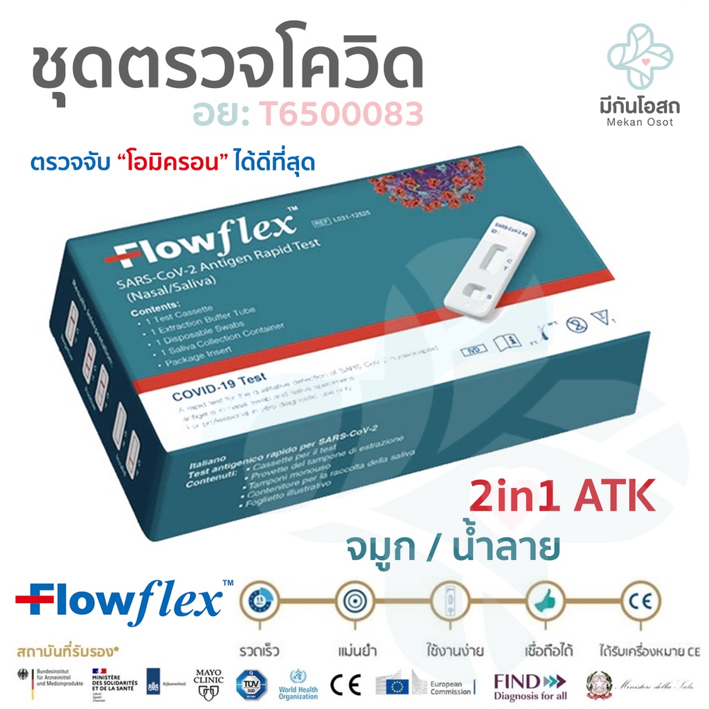 ชุดตรวจโควิด ATK Flowflex 2in1 ❤️พร้อมส่งจากร้านยา❤️ ตรวจโอมิครอนได้ดีที่สุด สามารถเลือกเก็บตัวอย่างจากจมูกและน้ำลายได้