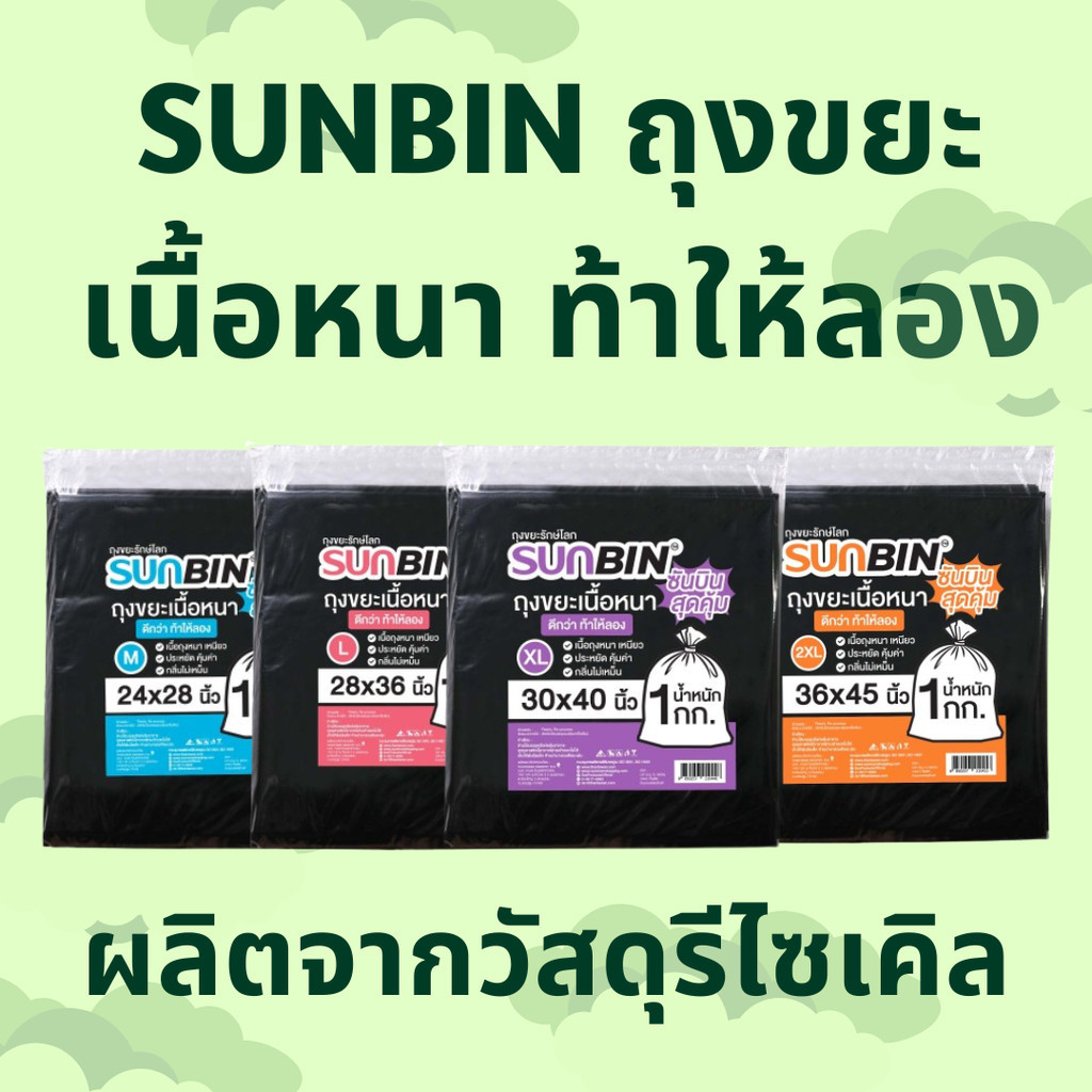 ถุงขยะ เนื้อเหนียว ไม่มีกลิ่น แถมรักษ์โลก SUNBIN แบบพับแยกใบ สีดำ 1x1 KG