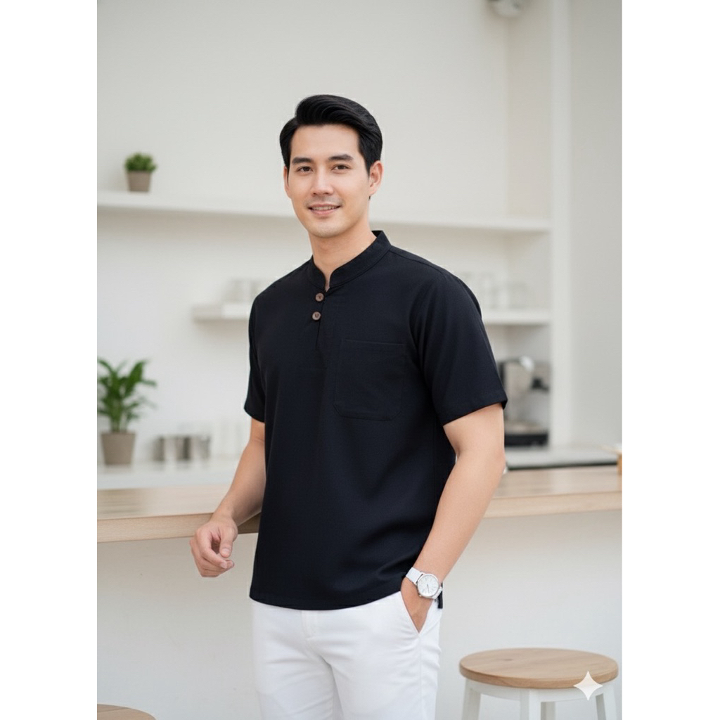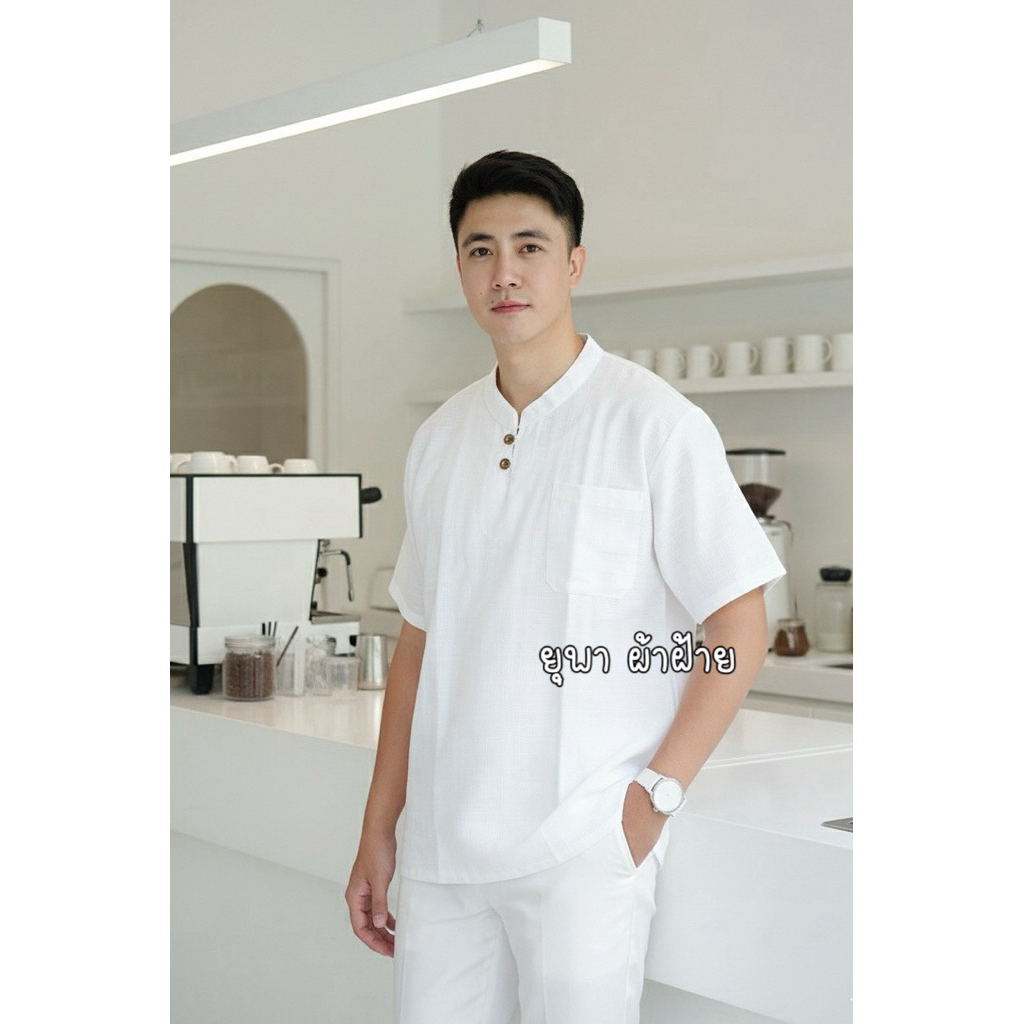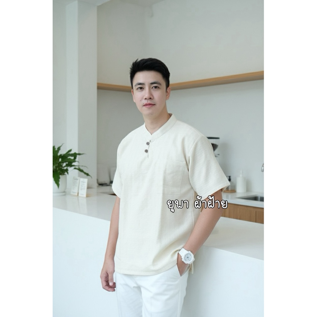 เสื้อผ้าฝ้ายคอจีน เจาะหน้ากระดุม2เม็ด