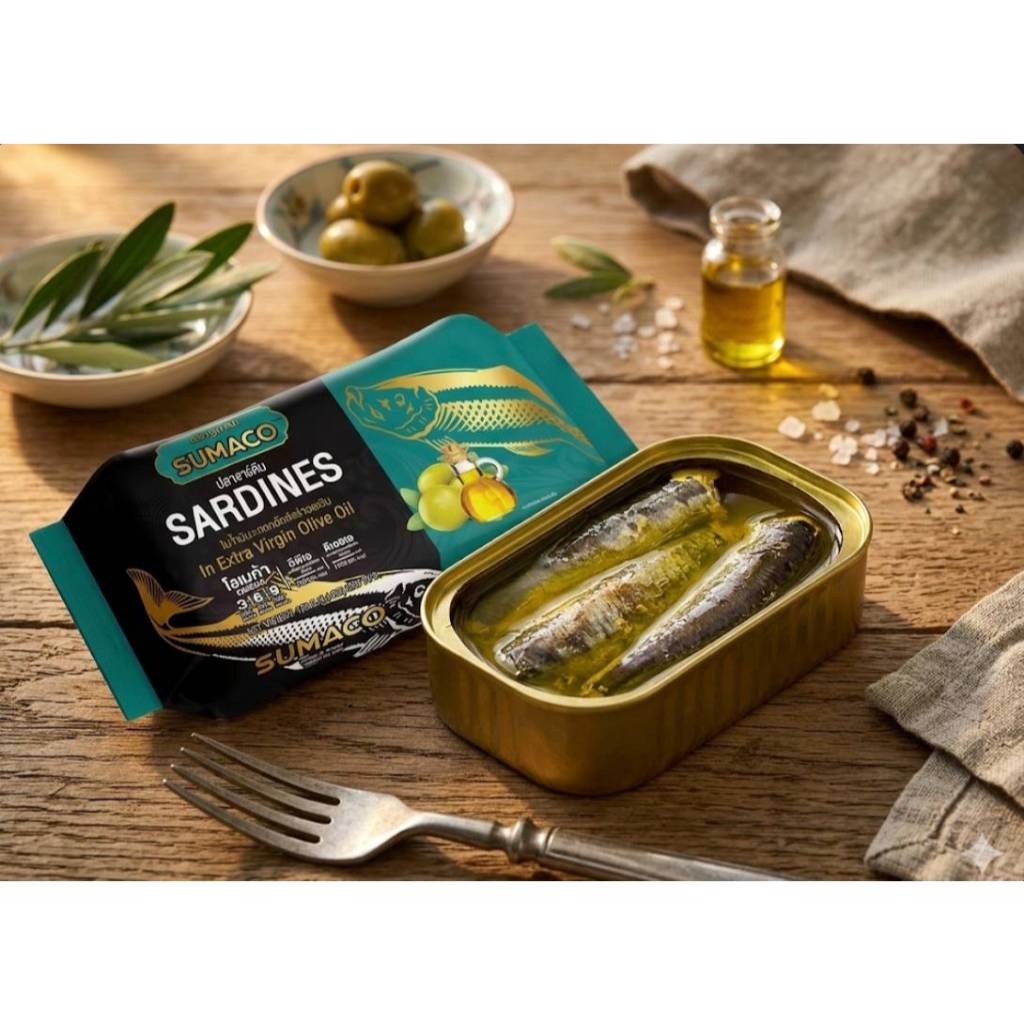 SUMACO ปลาซาร์ดีนในน้ำมันมะกอก เกรดพรีเมียม 125g ปลาซาร์ดีนเนื้อแน่น เนื้อเเน่นจากญี่ปุ่นมีคอลลาเจนคุณภาพดี