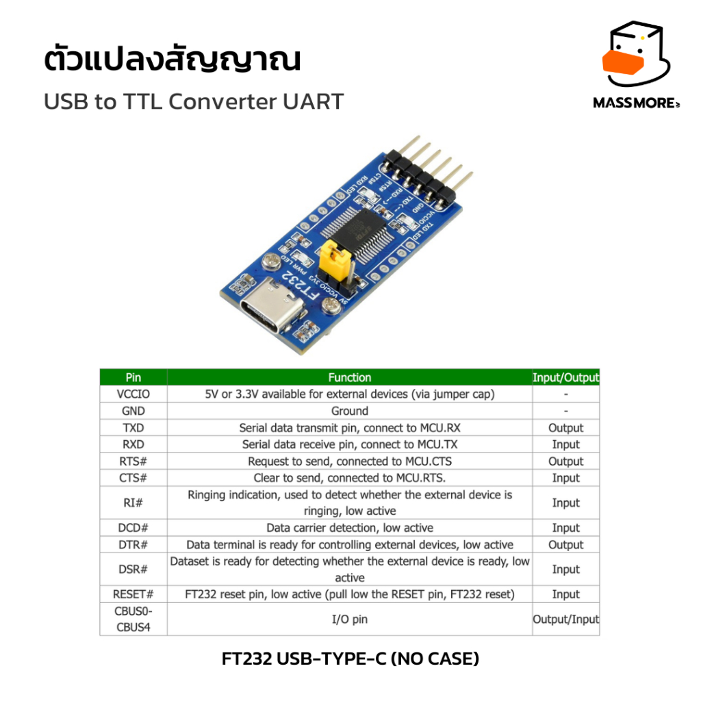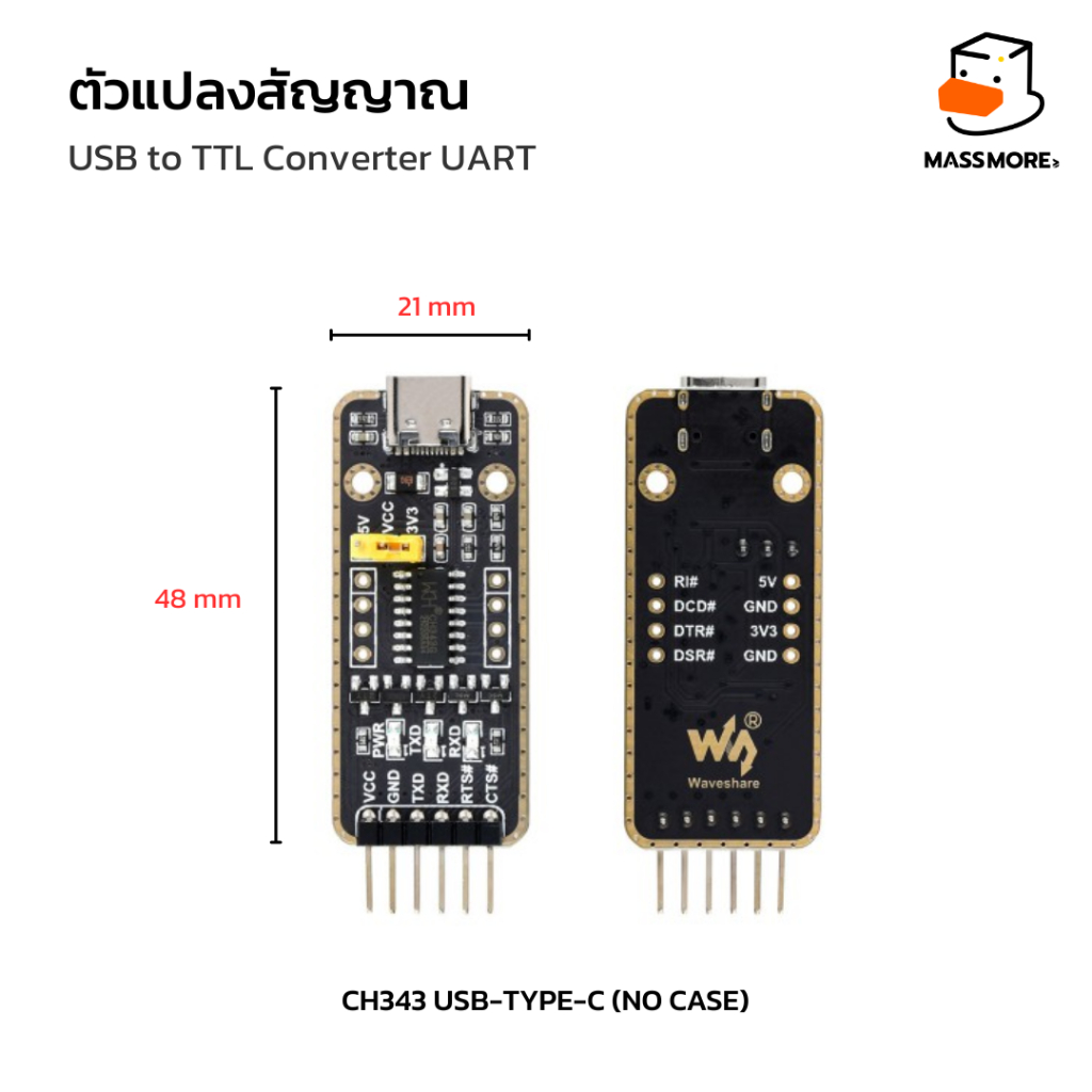 USB to TTL Converter Serial UART ตัวแปลงสัญญาณ CH343 FT232 USB-Type-C USB-A Waveshare