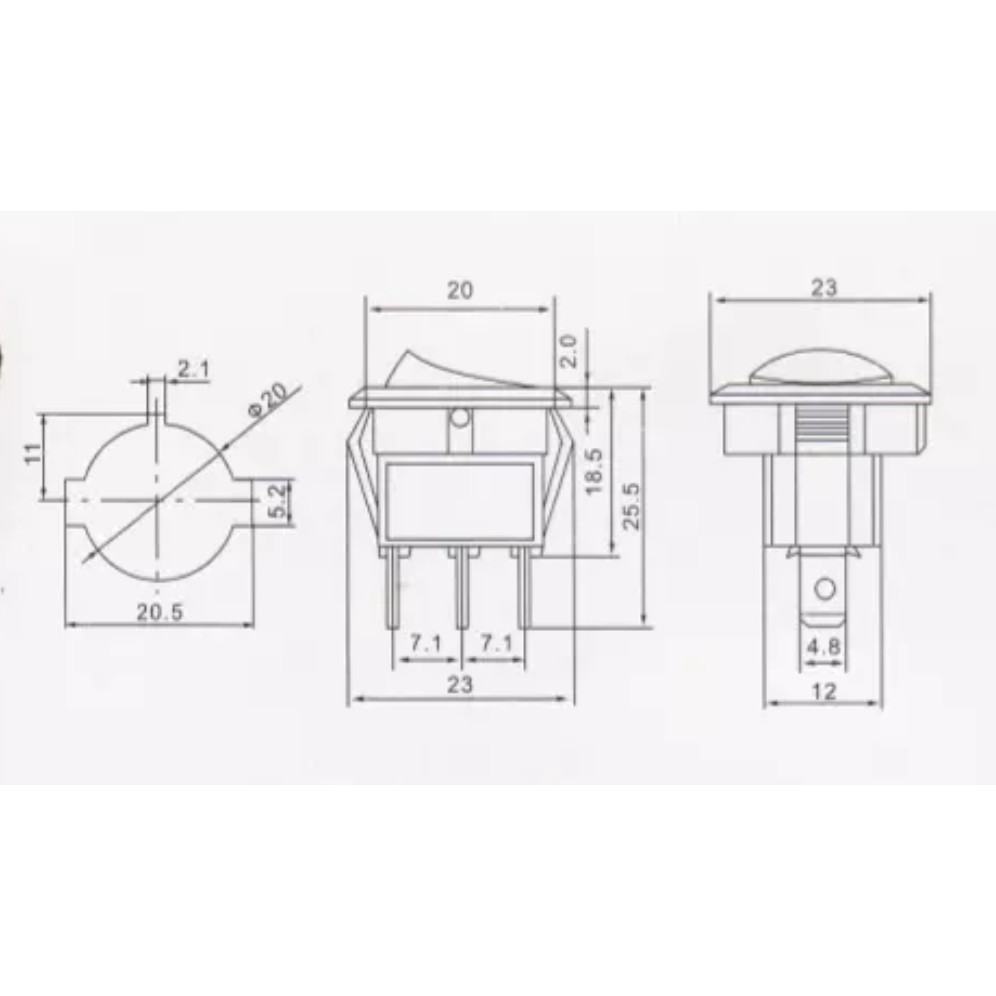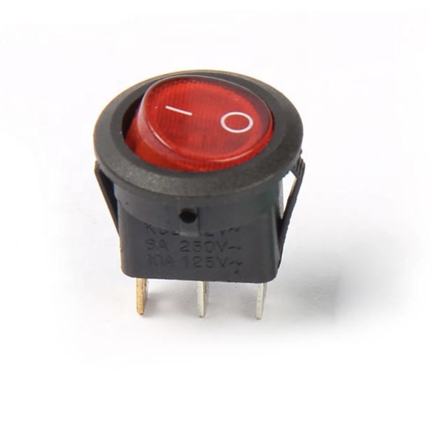 สวิตช์กระดก มีไฟ 2 ตำแหน่ง 3 ขา 20 มม. สีแดง 250V 4A KCD1-106BN round rocker switch illuminated ได้รับใน 3 วันทำการ