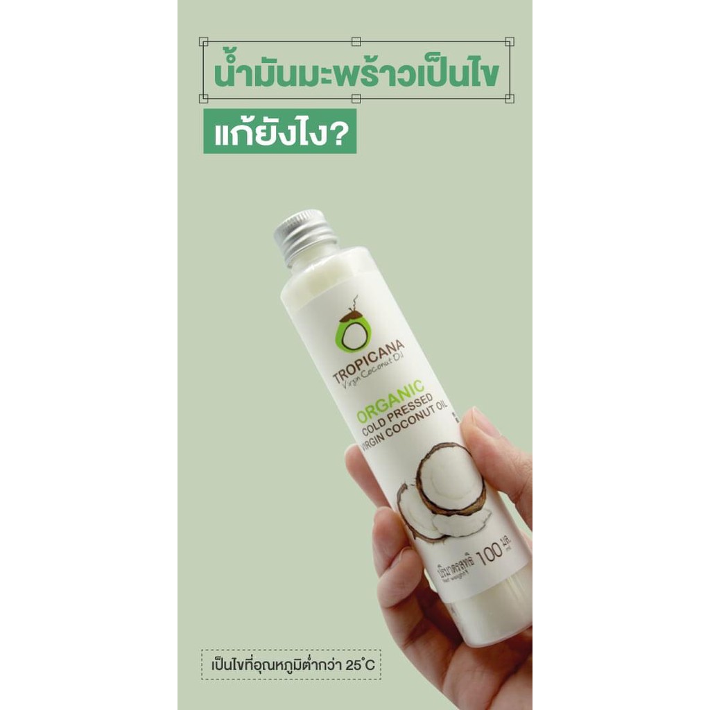 Tropicana น้ำมันมะพร้าวบริสุทธิ์สกัดเย็น ออร์แกนิก ขนาด 100 มล.(เจ)(คีโตKeto)(00057)