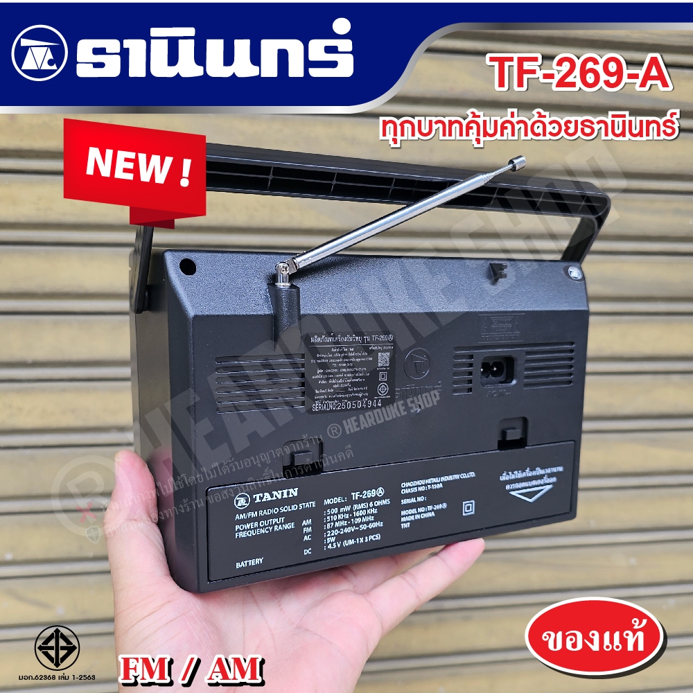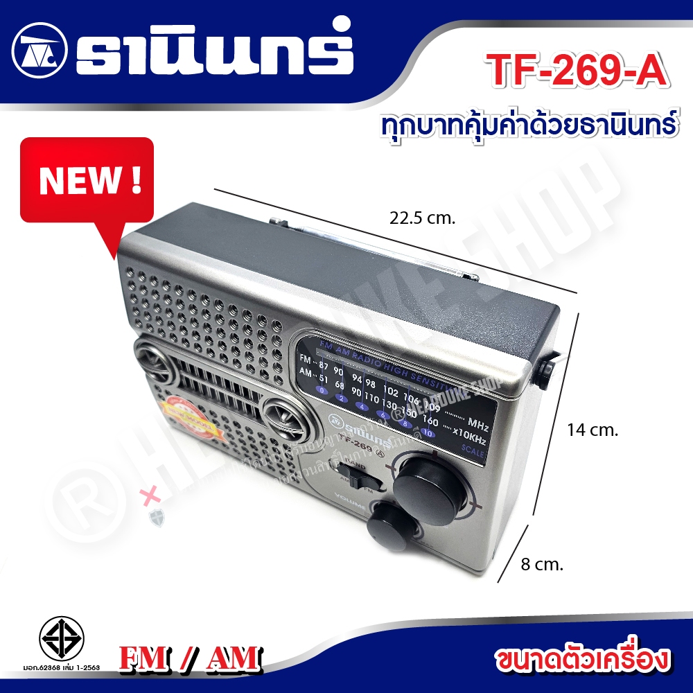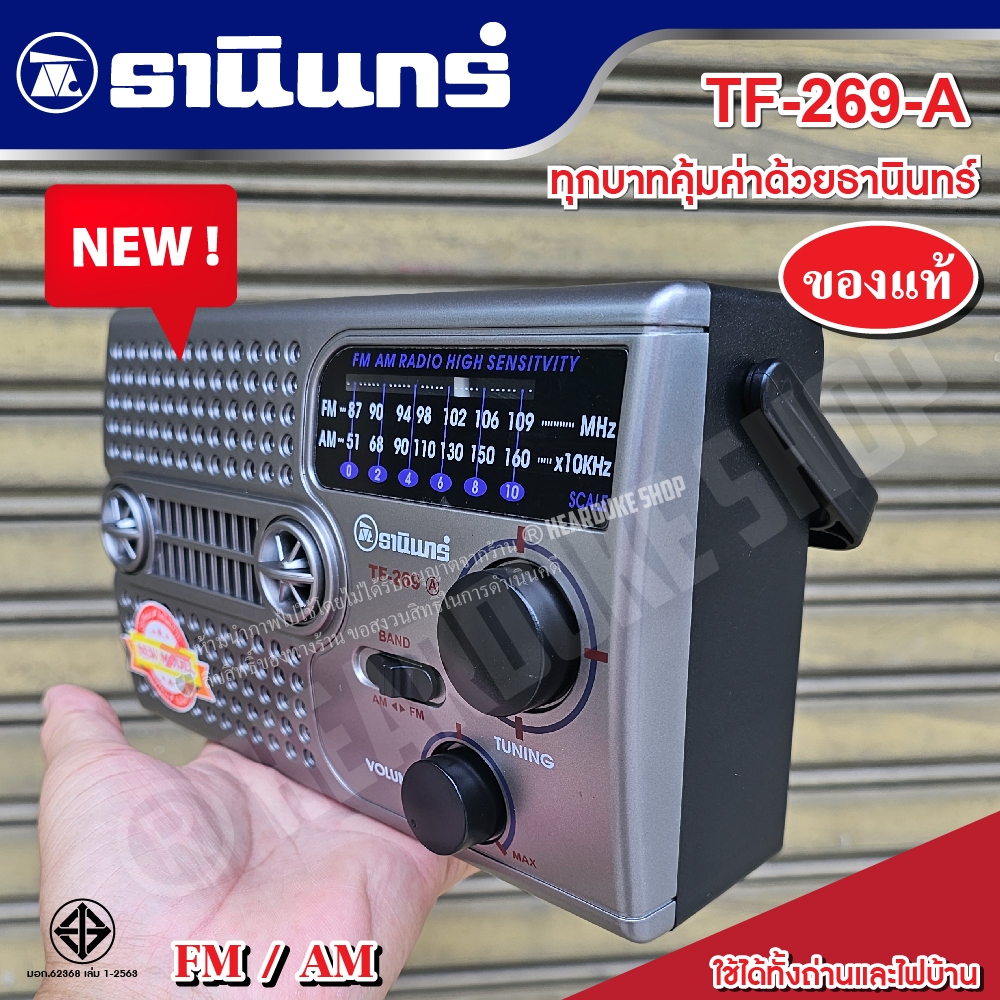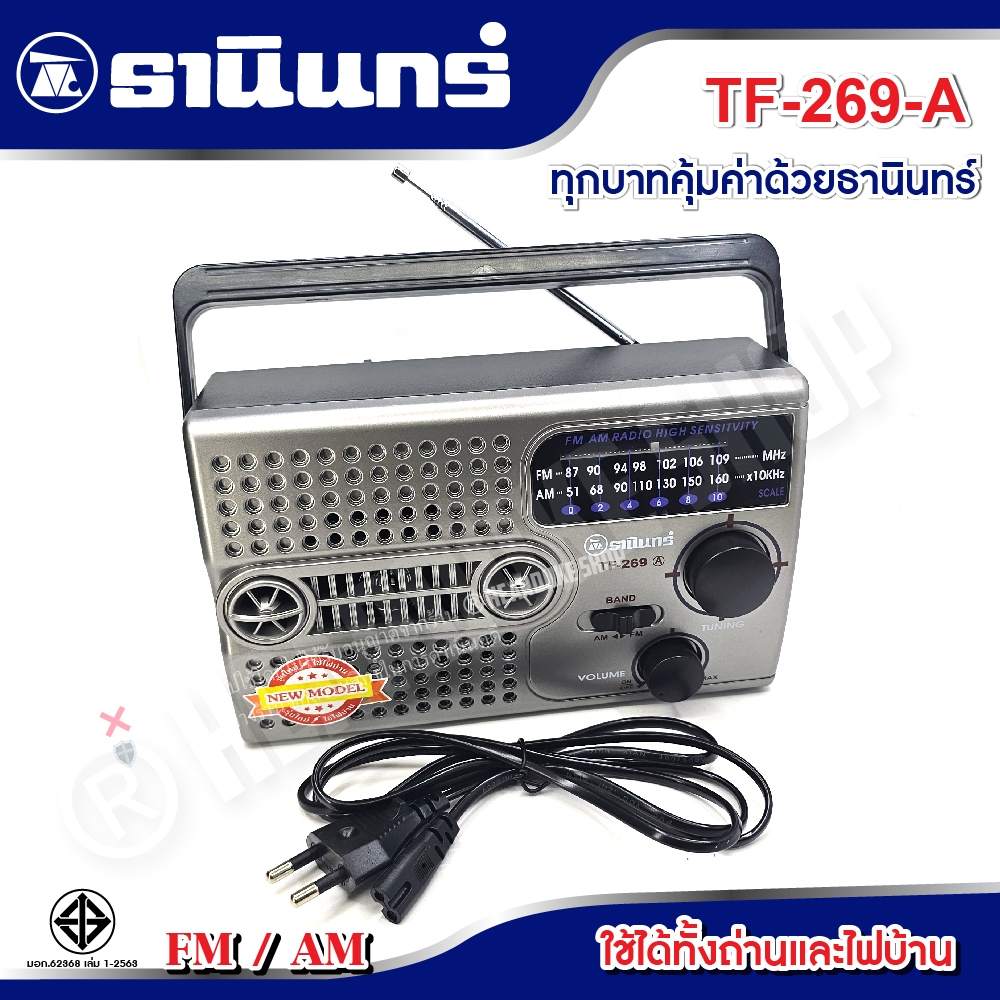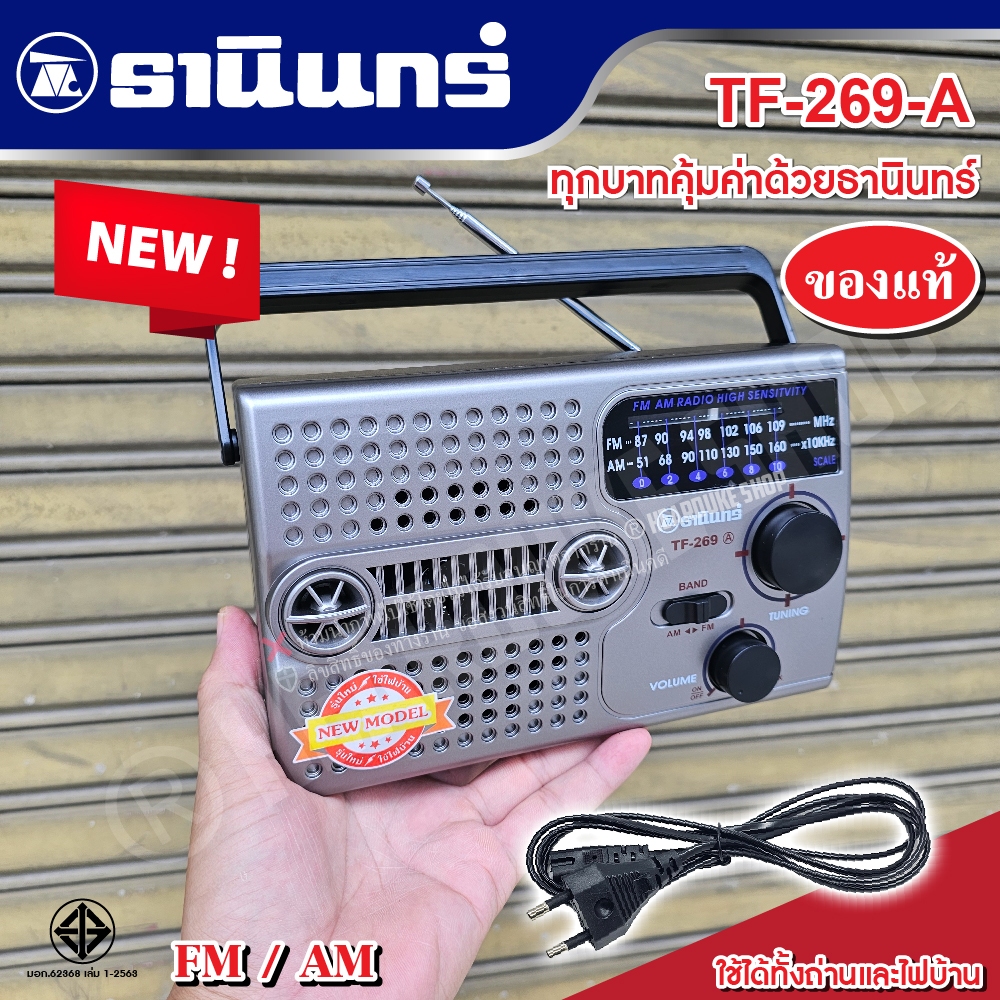 ธานินทร์ วิทยุ Am/Fm รุ่นใหม่ รุ่น TF269A วิทยุใส่ถ่าน ใช้ไฟบ้าน-ใช้ถ่านได้ แท้ 100% มอก.แท้