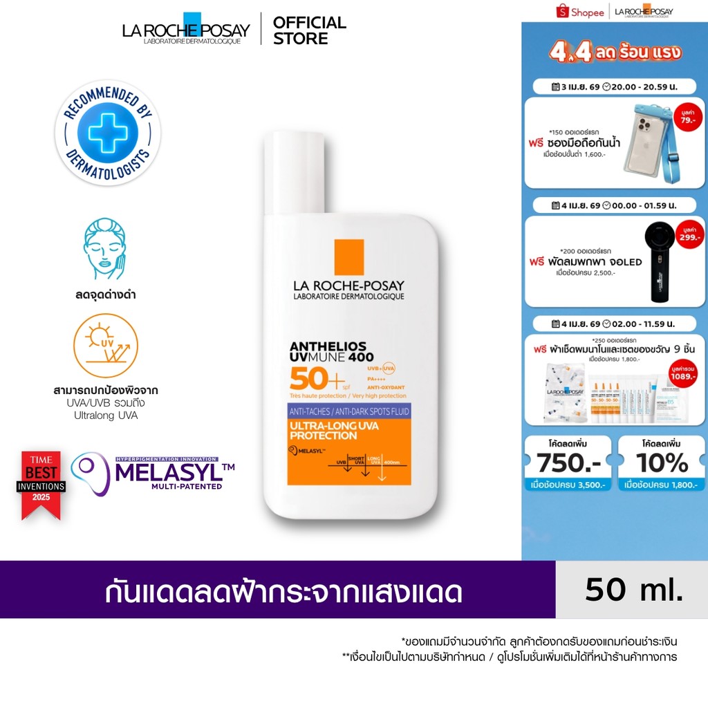 ลา โรช-โพเซย์ La Roche-Posay ANTHELIOS UVMUNE400 ANTI-DARK SPOTS FLUID กันแดดลดปัญหาฝ้าแดด จุดด่างดำ 50ml.