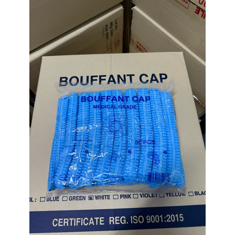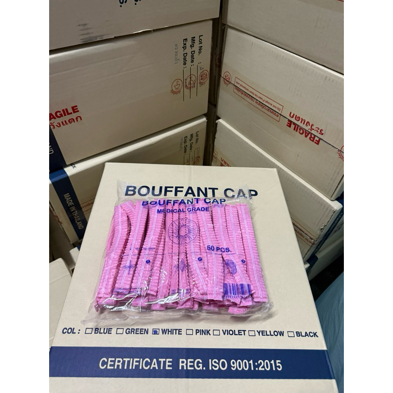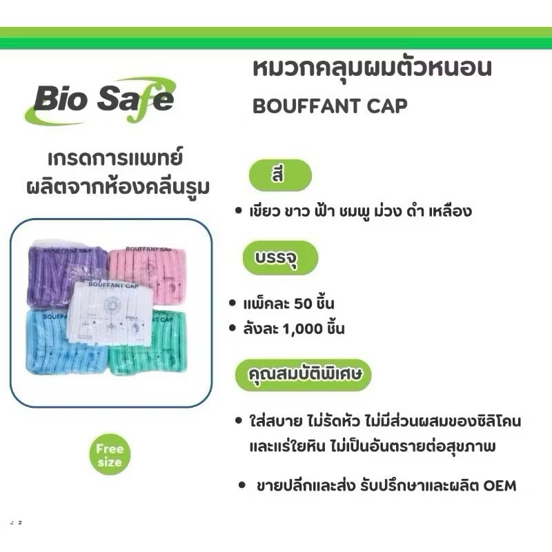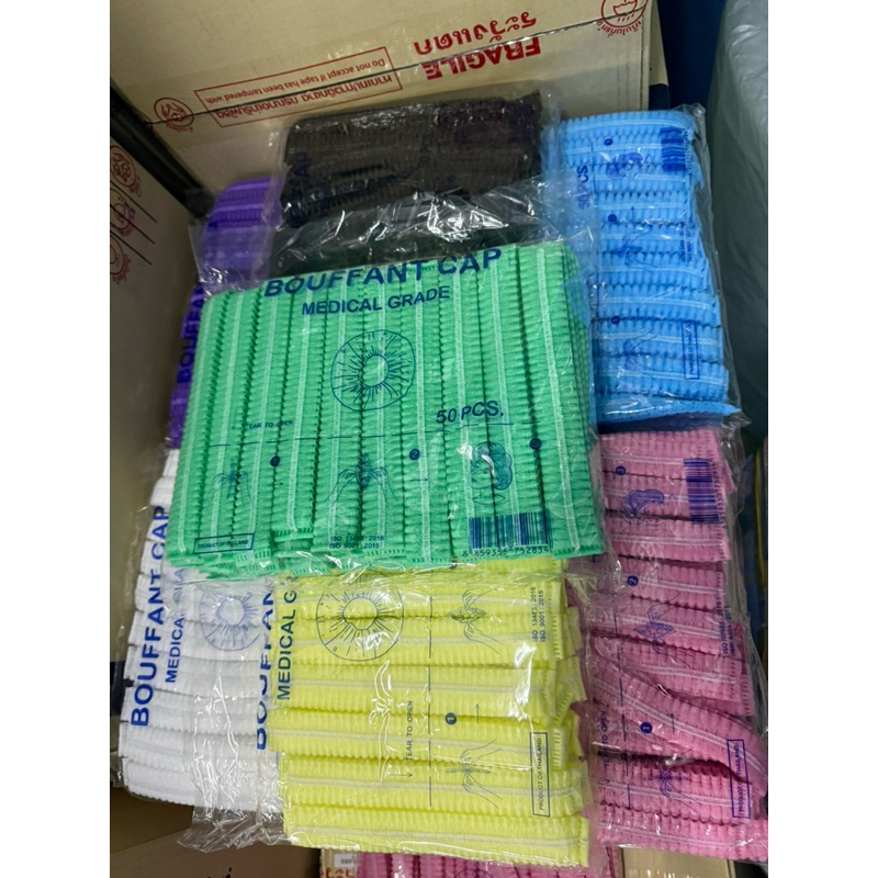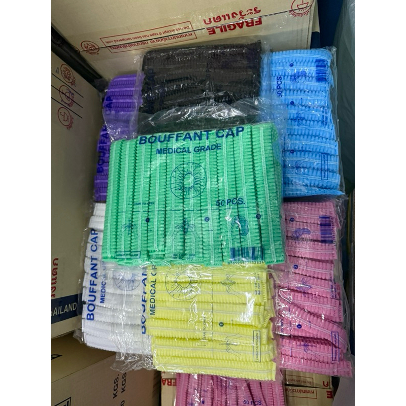 *ขายดี*หมวกคลุมผม Bouffant Cap 7สี หมวกตัวหนอน Biosafe แพค 50 ชิ้น ผลิตจากใย สงเคราะห์แท้ 100%