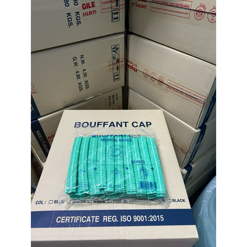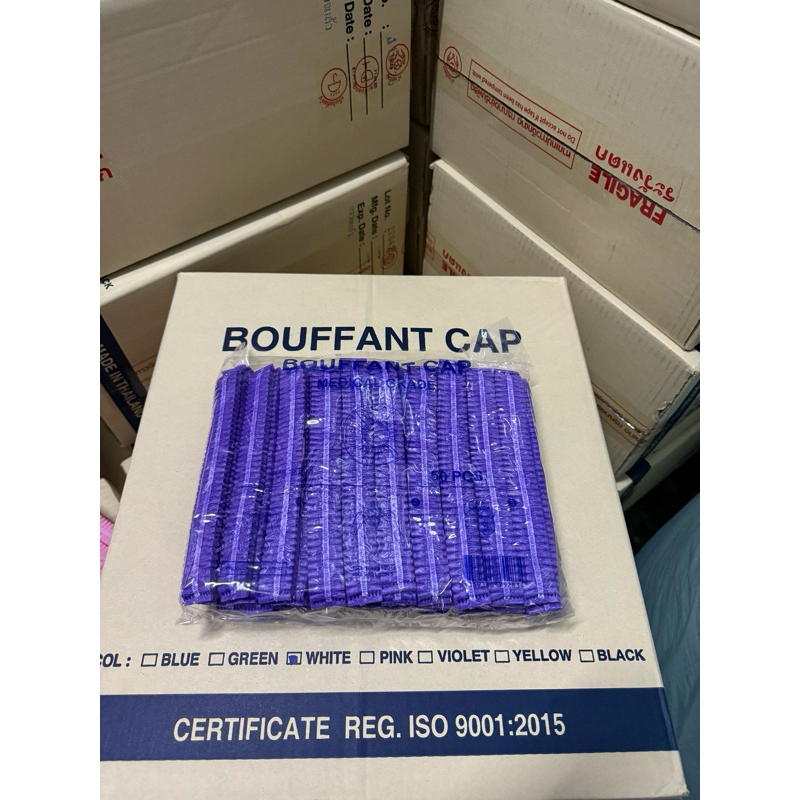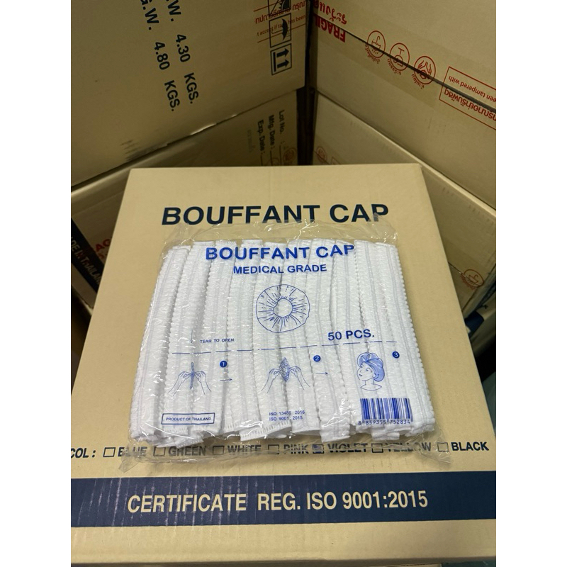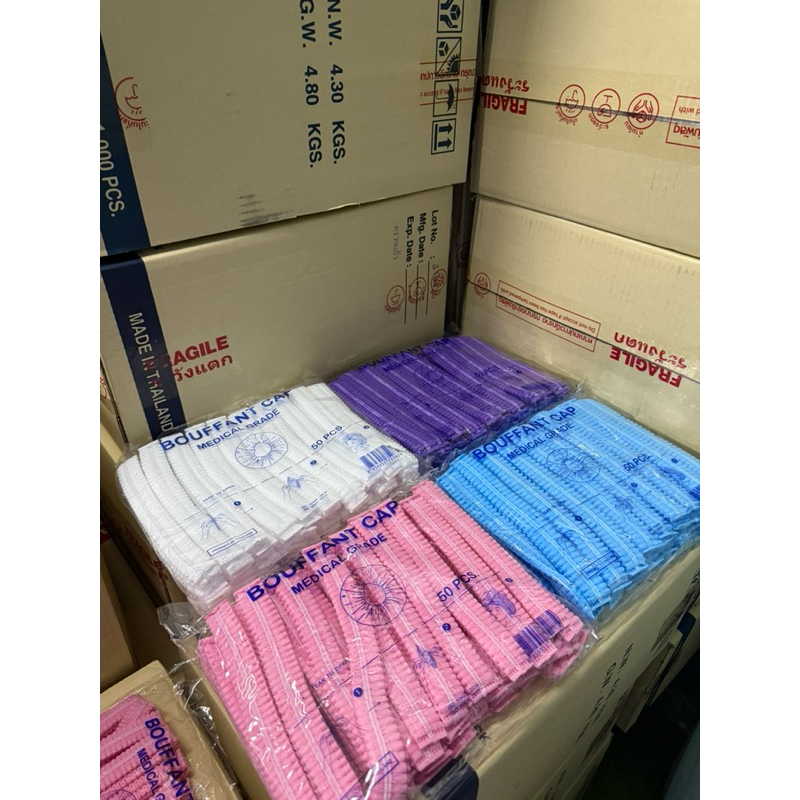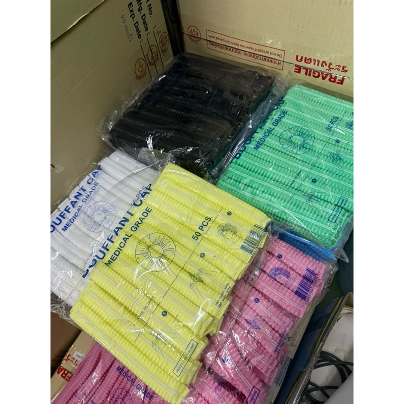 *ขายดี*หมวกคลุมผม Bouffant Cap 7สี หมวกตัวหนอน Biosafe แพค 50 ชิ้น ผลิตจากใย สงเคราะห์แท้ 100%