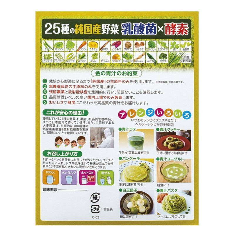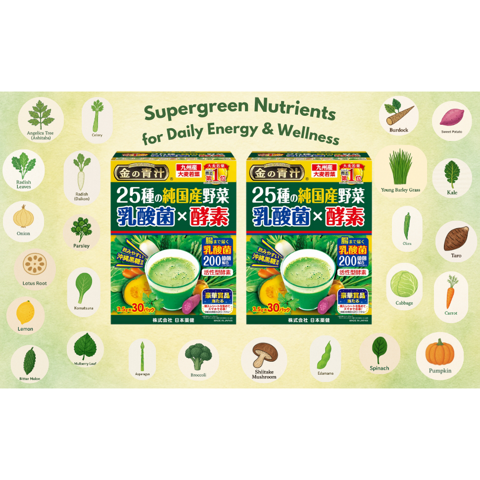 Nihon Yakken kin No Aojiru 25 Kinds ผงนํ้าผักใบอ่อนของข้าวบาร์เล่ย์ และผักอีก 25ชนิด 30 ซอง