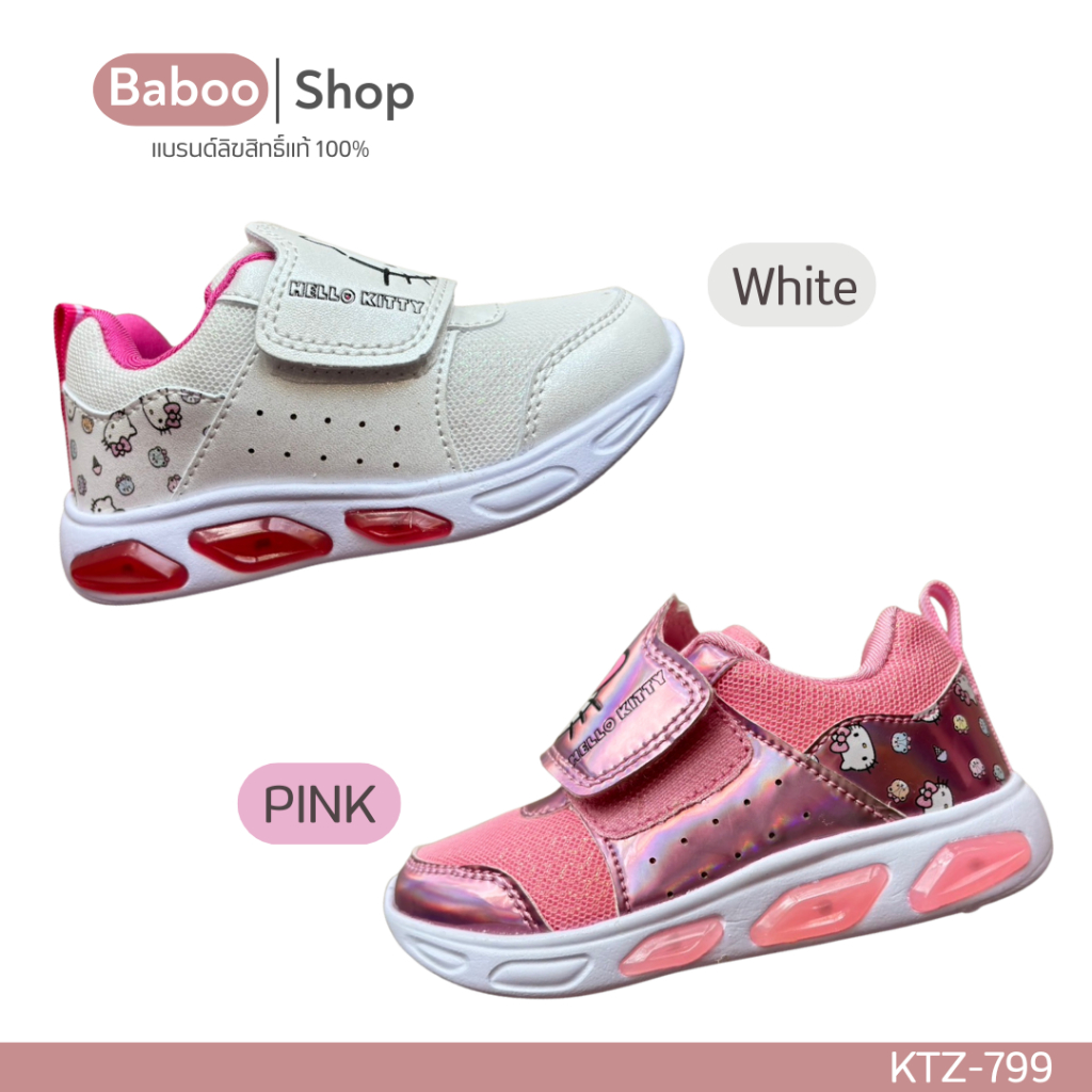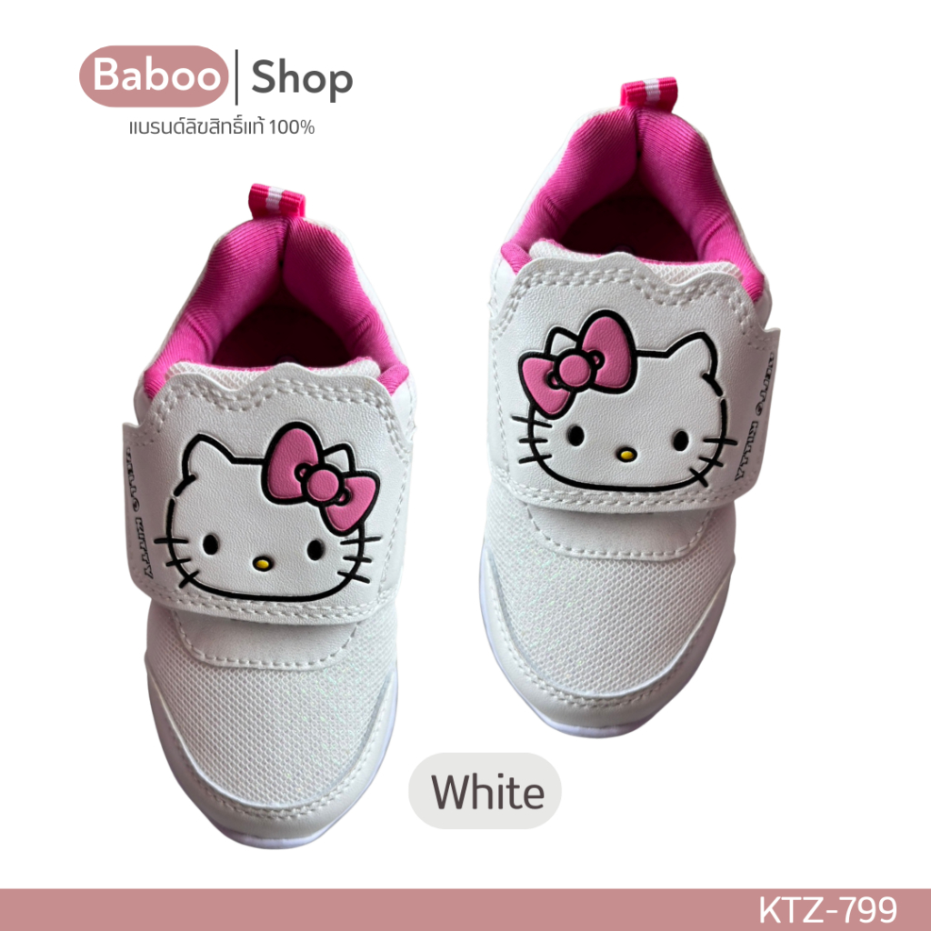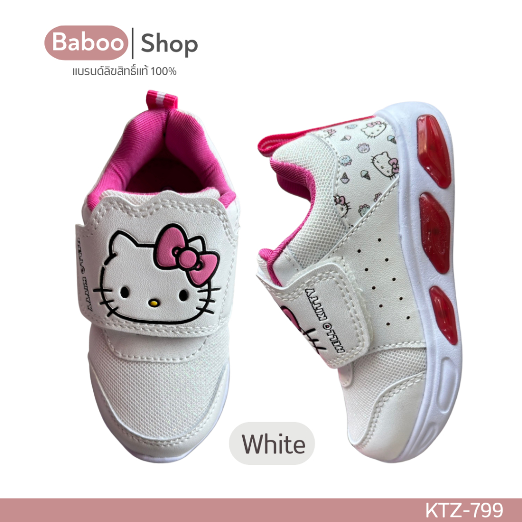 รองเท้าผ้าใบเด็กหญิง 🔥มีไฟ🔥 Sanrio Hello Kitty ลิขสิทธิ์แท้ สีขาว สีชมพู