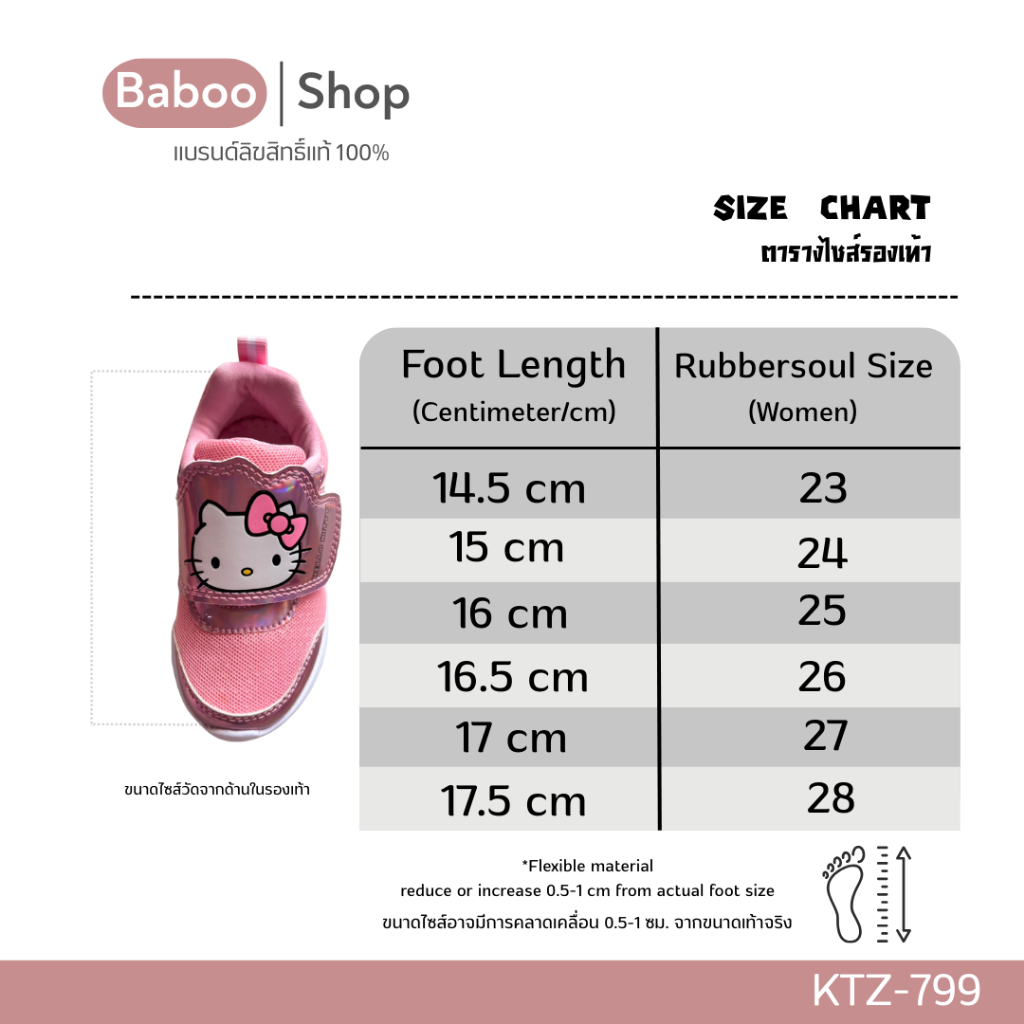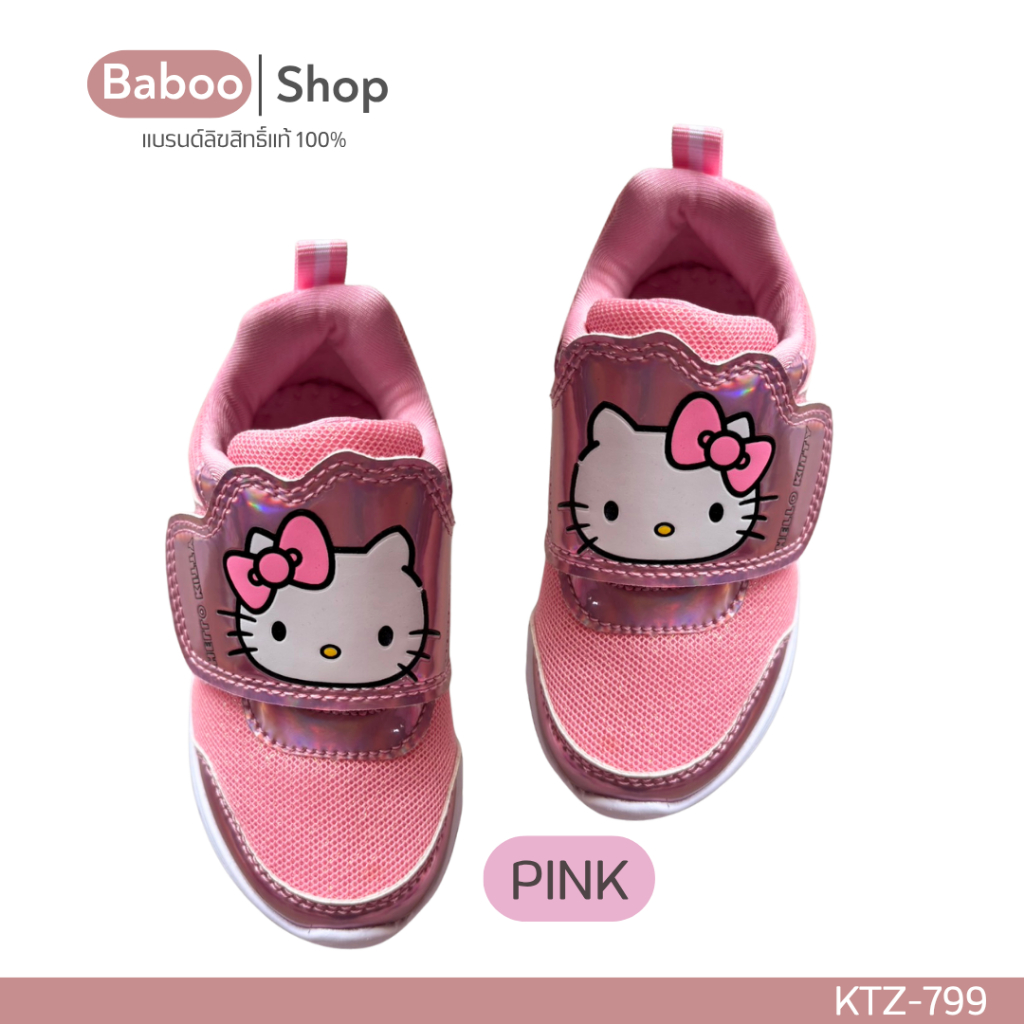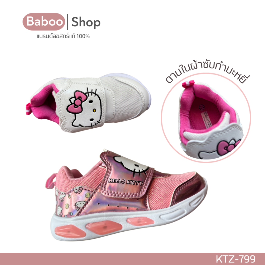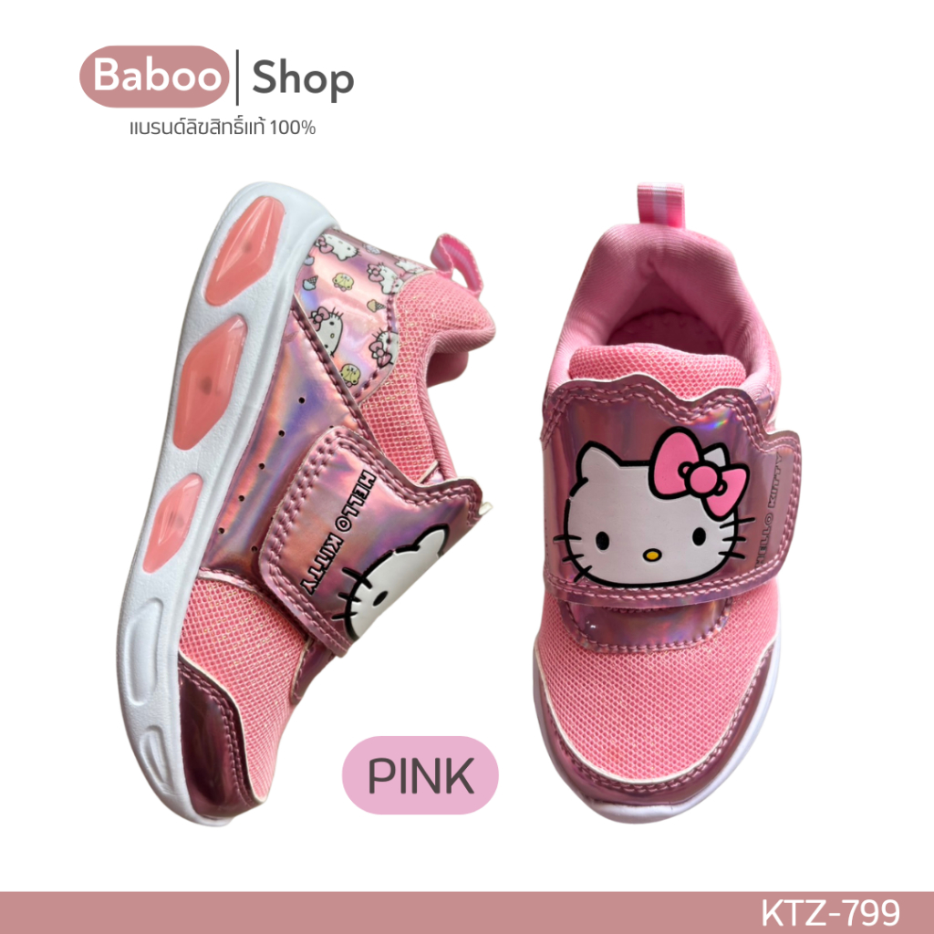 รองเท้าผ้าใบเด็กหญิง 🔥มีไฟ🔥 Sanrio Hello Kitty ลิขสิทธิ์แท้ สีขาว สีชมพู