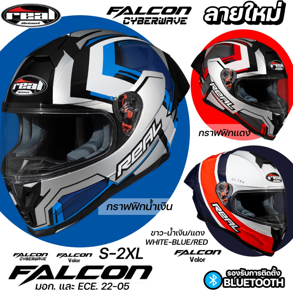 หมวกกันน็อค REAL FALCON ใหม่2025 เต็มใบ มอก. ECE 22.05 S-XXL รองรับบลูทูธ CYBER WAVE VALOR
