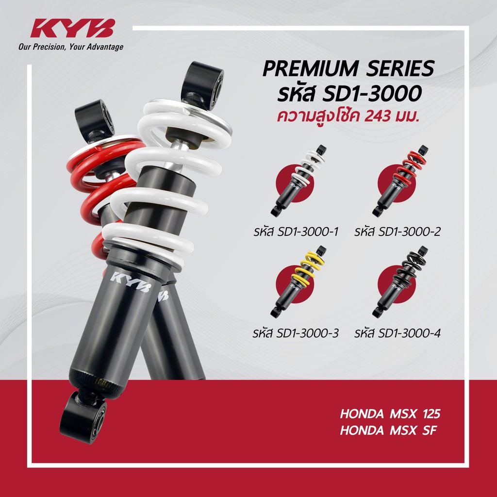 โช้คหลัง (KYB) Replacement MSX-125, MSX-SF (ความสูง 243mm.) MSX125 KYB เลือกสีได้