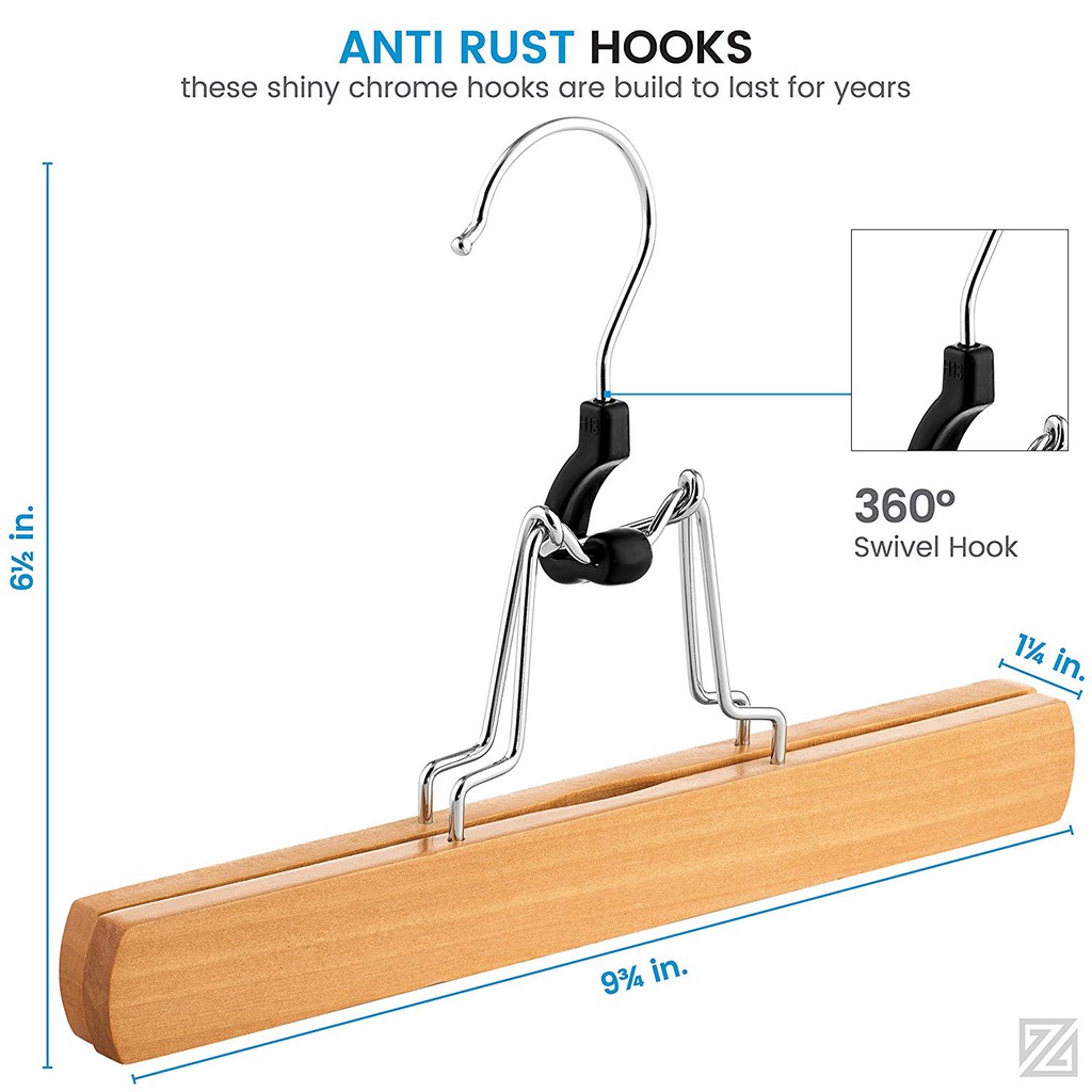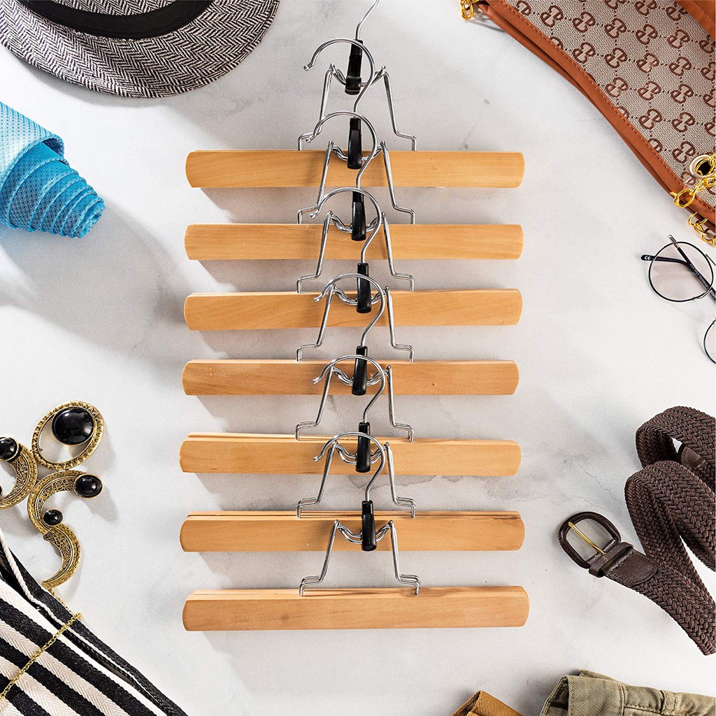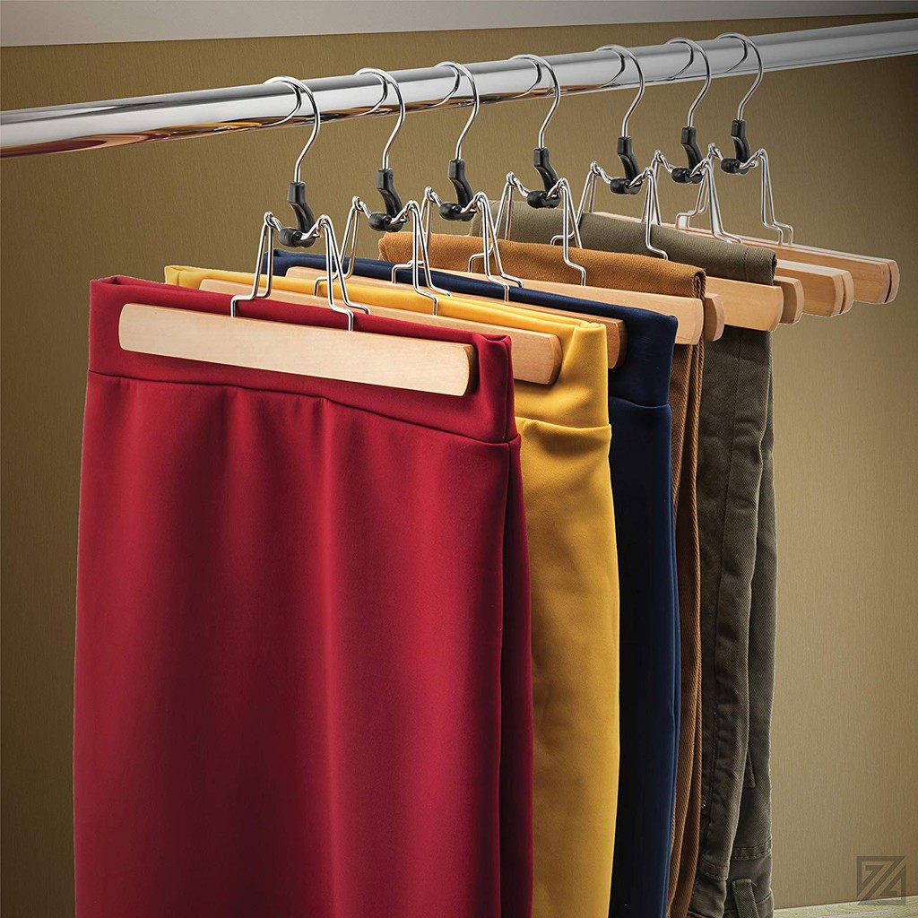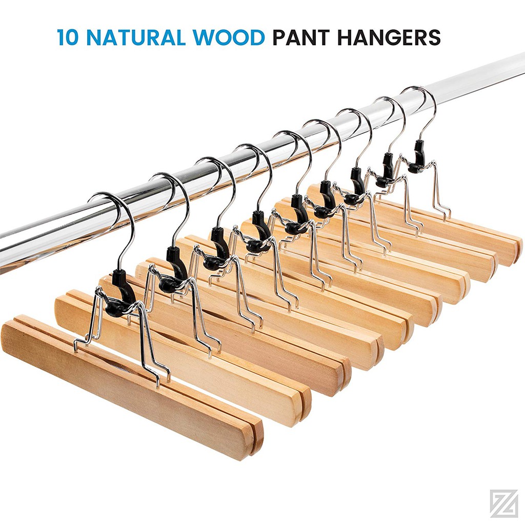 ไม้แขวนกางเกง แบบไม้ คุณภาพสูง พร้อมคลิปหนีบ กันลื่น สําหรับแขวนกระโปรง 10 แพ็ค