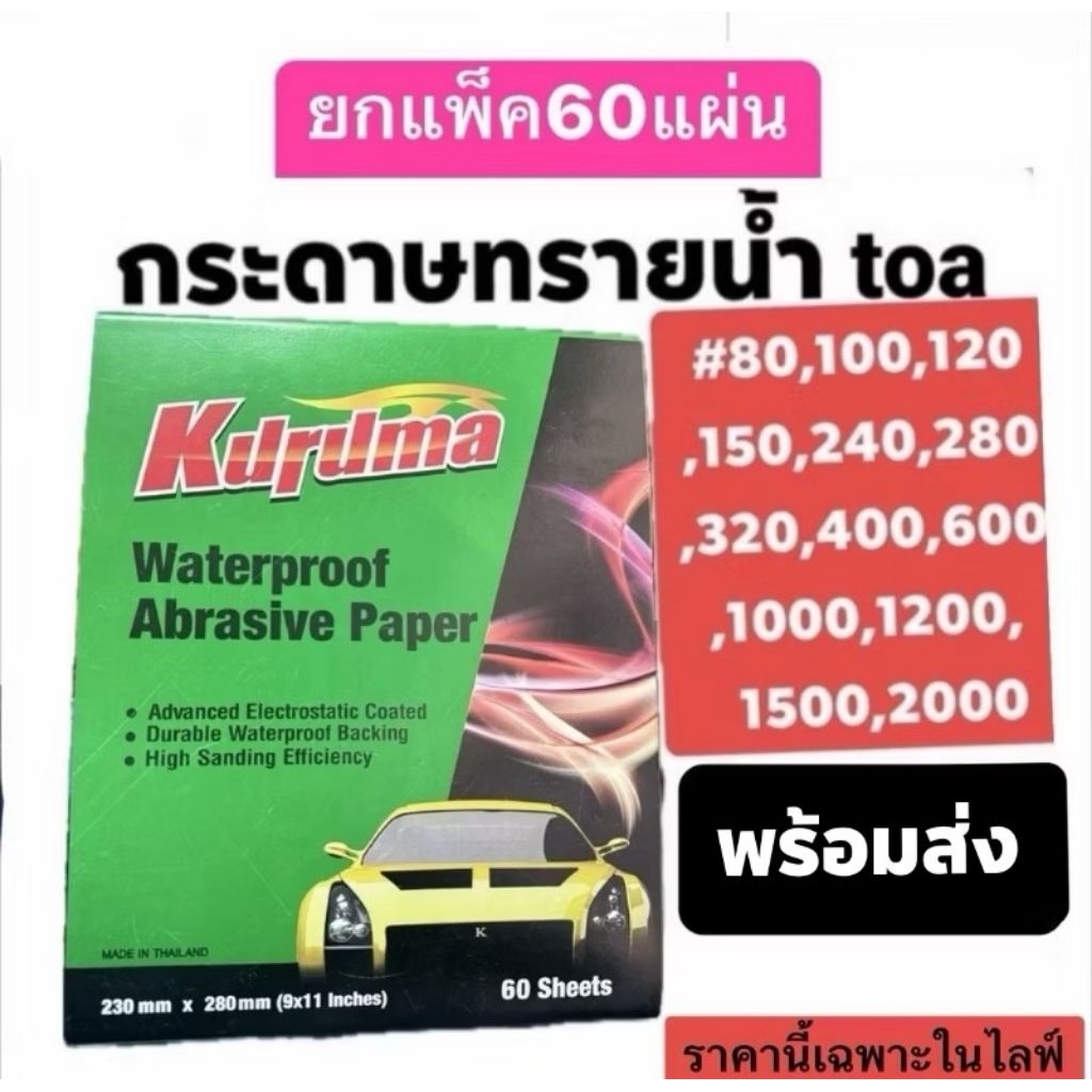 กระดาษทรายน้ำ Kuruma(เหลี่ยม) 60แผ่น เบอร์ 80-2000 พร้อมส่ง
