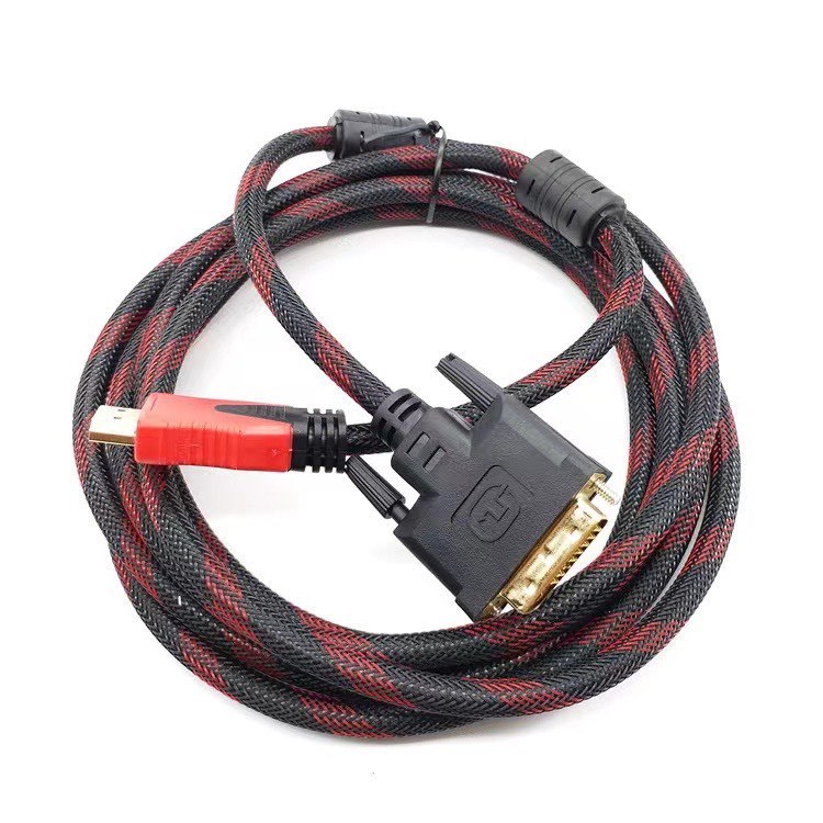 สายจอDVI 24+1 to hdmi สายถัก ยาว1.5m HDMI TO DVI 24+1 Cable สายแปลง HDMI TO DVI
