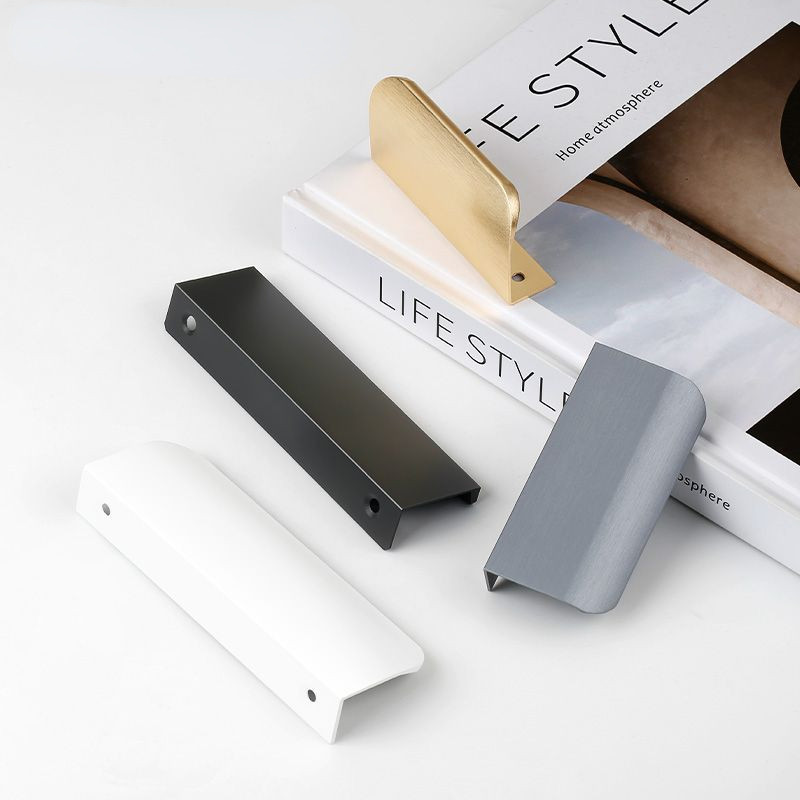ที่จับที่มองไม่เห็นสีดําขยายประตูตู้ด้านบนตู้เสื้อผ้าขนาดใหญ่จับที่ทันสมัยเรียบง่ายโกลเด้นแสงหรูหราลิ้นชักมือจับประตูตู้