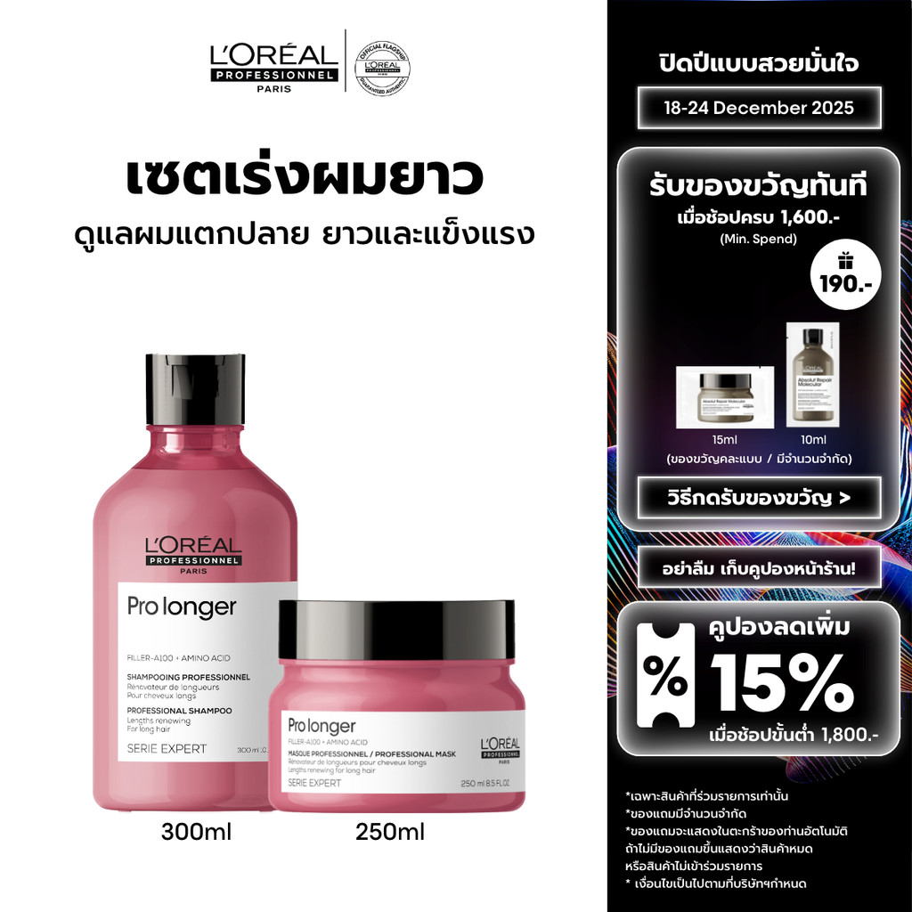 [เซตแชมพู+มาส์ก] L'Oreal Professionnel Pro Longer เซตดูแลผมยาวที่แตกปลายและอ่อนแอ 300ml + 250ml