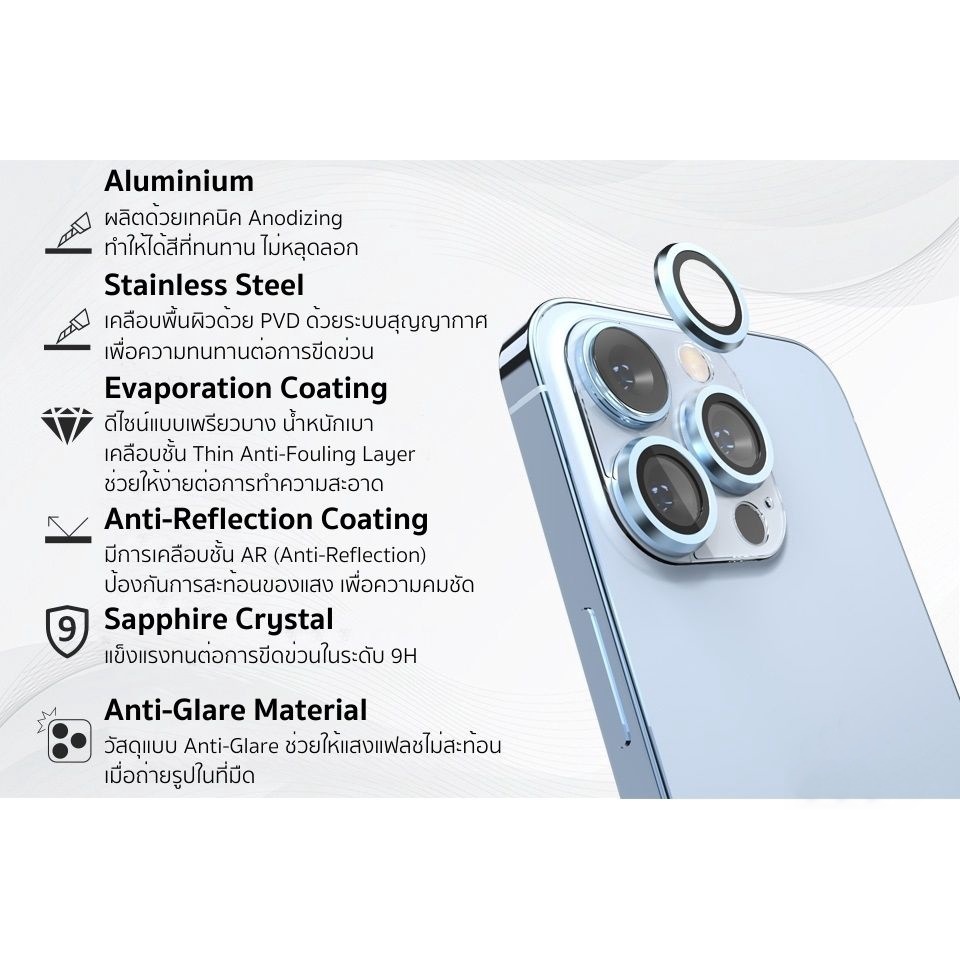 กระจกกันรอย เลนส์กล้อง Devilcase Sapphire Lens Protector สำหรับ iPhone 16 / Pro / Pro Max / 13 mini