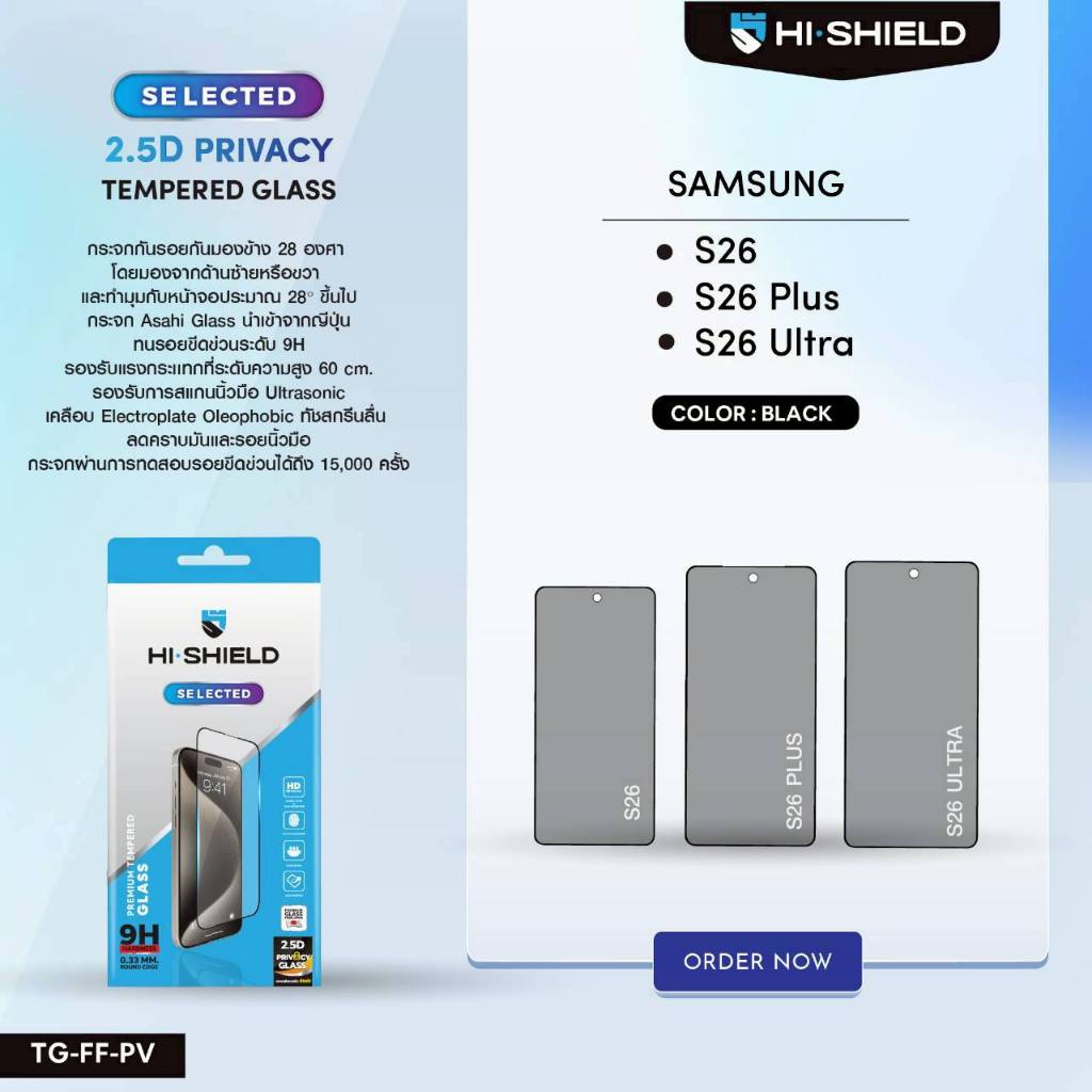 (ส่งทันที) ฟิล์มกระจกกันคนมอง เต็มจอ HiShield Selected 2.5D Privacy สำหรับ Galaxy S26 / S25 / S24 / Plus / Ultra