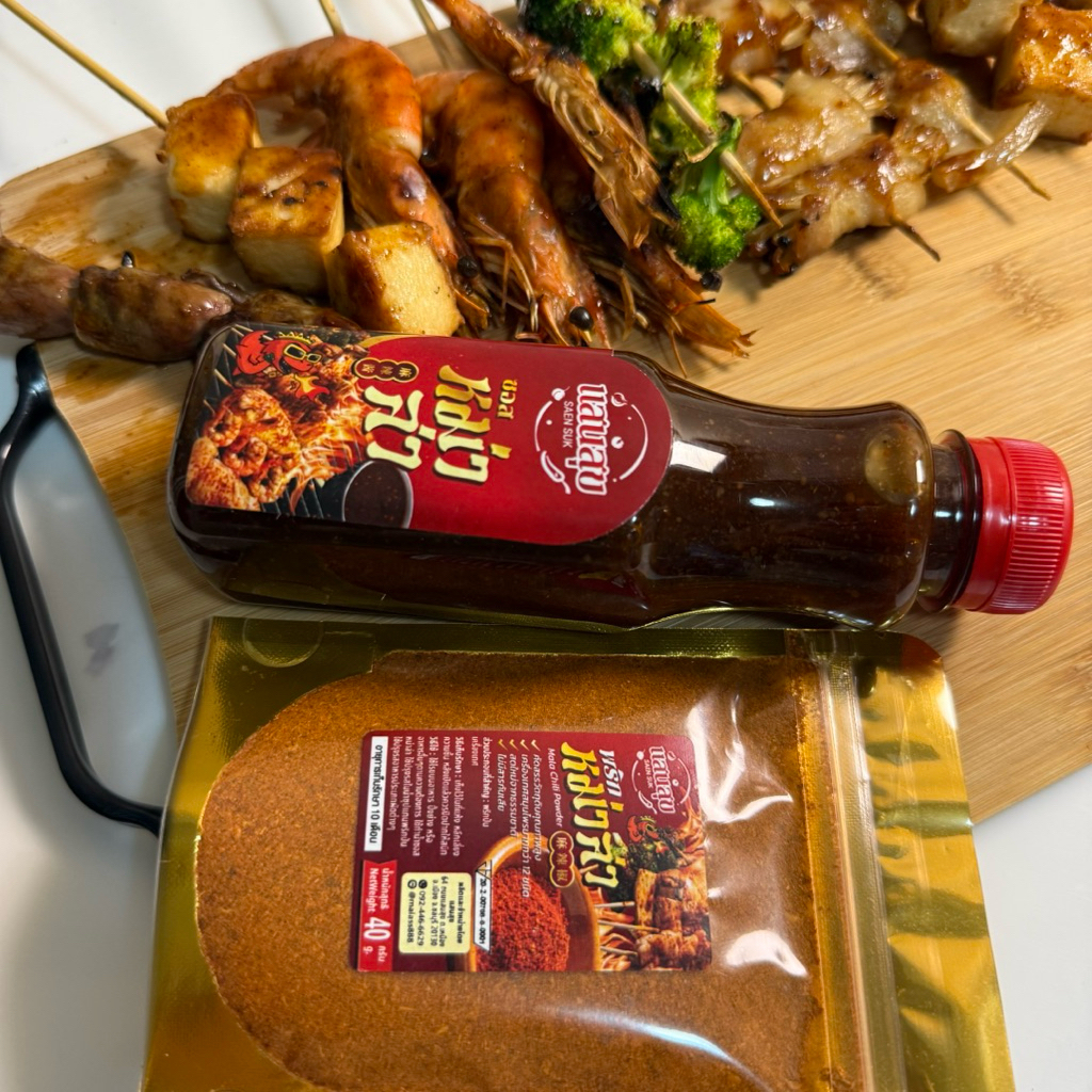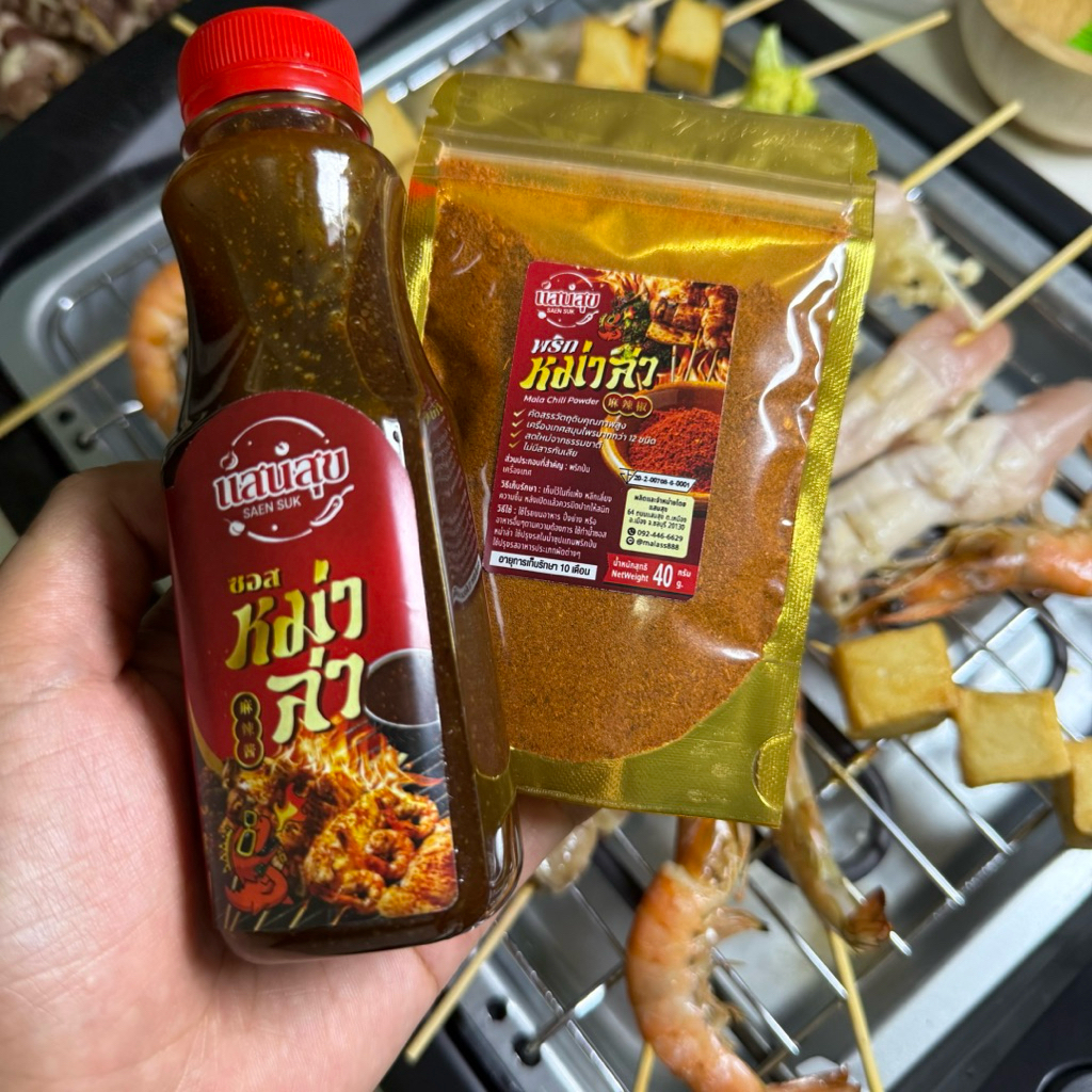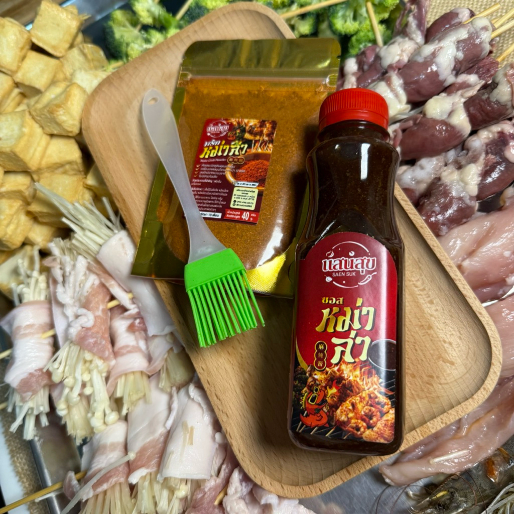 (มีอย.)ซอสหม่าล่าพริกหม่าล่าตราแสนสุข แถมฟรีไม้แหลมกับแปรงทาซอส อร่อยครบจบในชุดเดียว