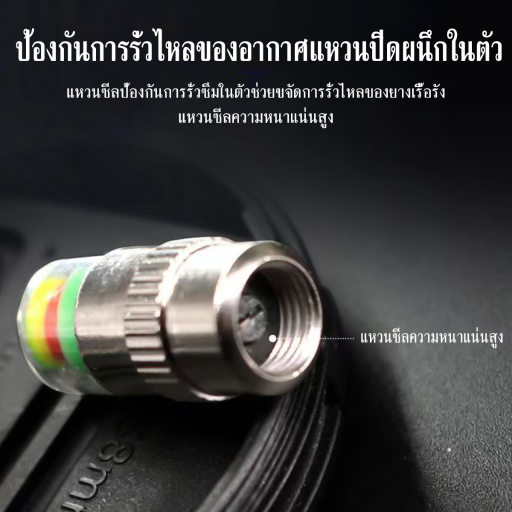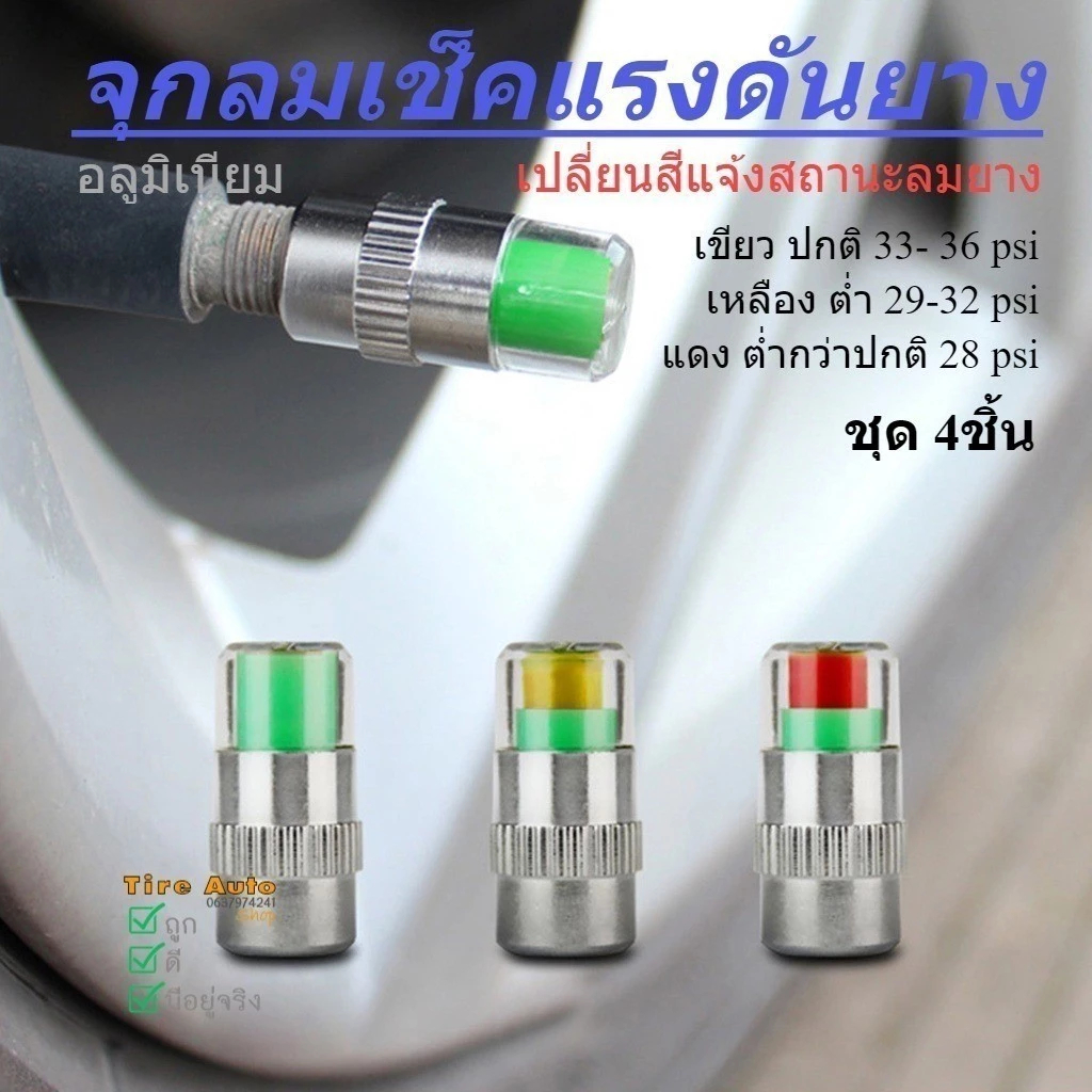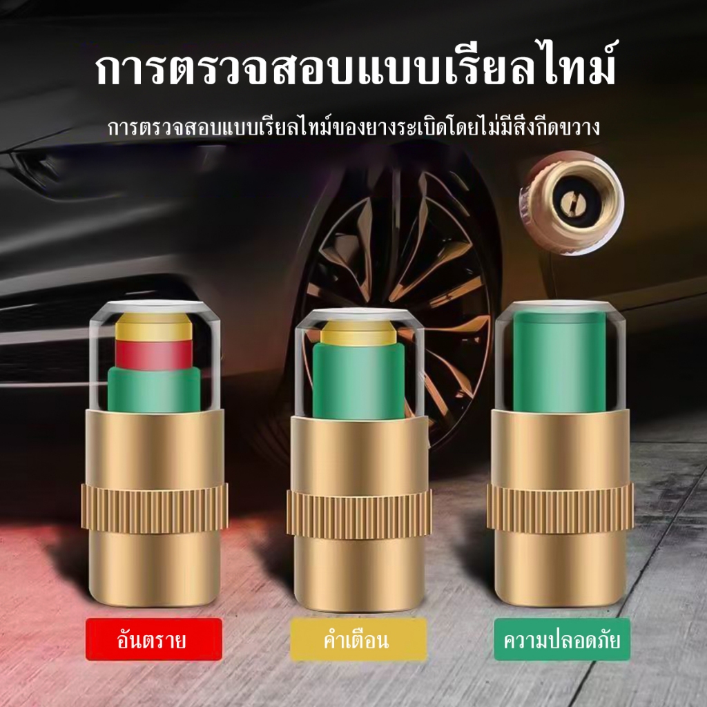 จุ๊บลมยาง จุกปิดลมยางรถยนต์ 4ชิ้น วัดความดันลมได้ในตัว มีสีแจ้งเตือนสถานะลมยาง ใช้ได้ทั้งรถจักรยาน มอเตอร์ไซค์ รถยนต