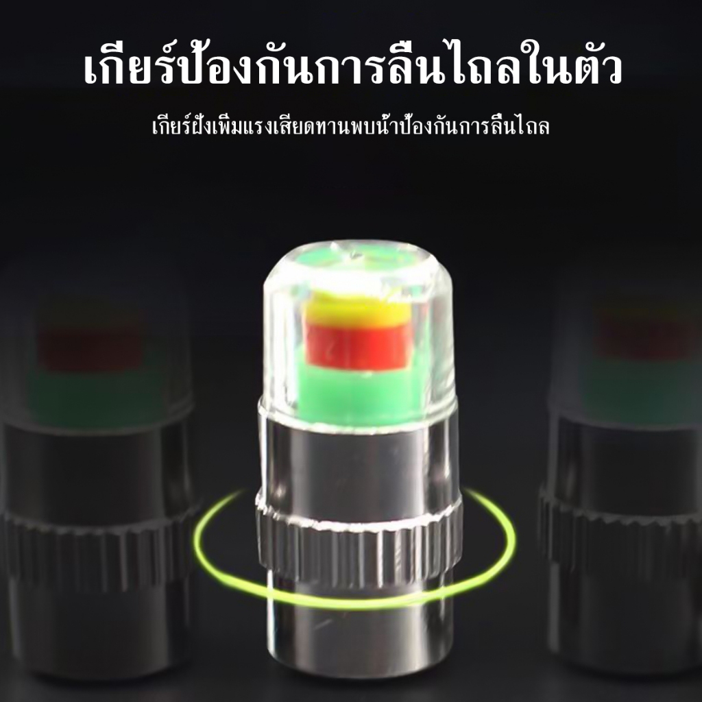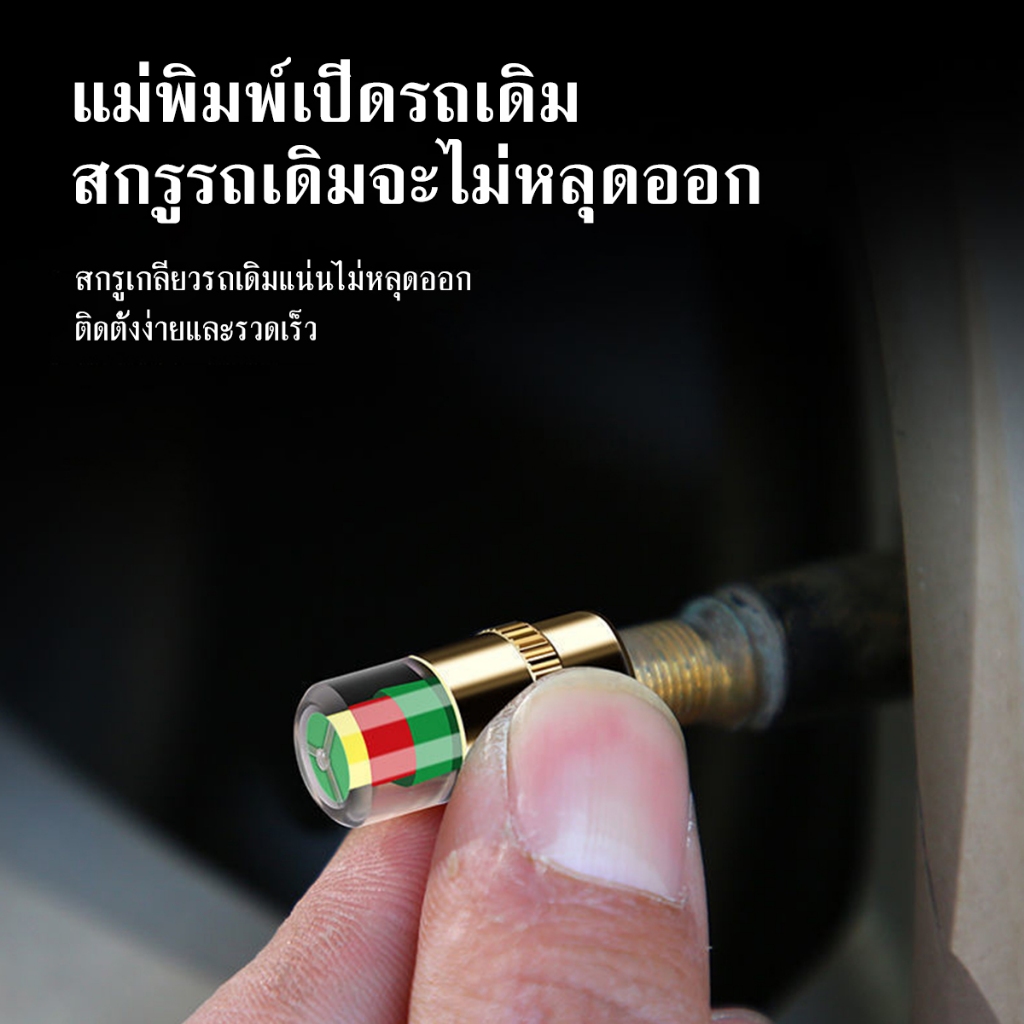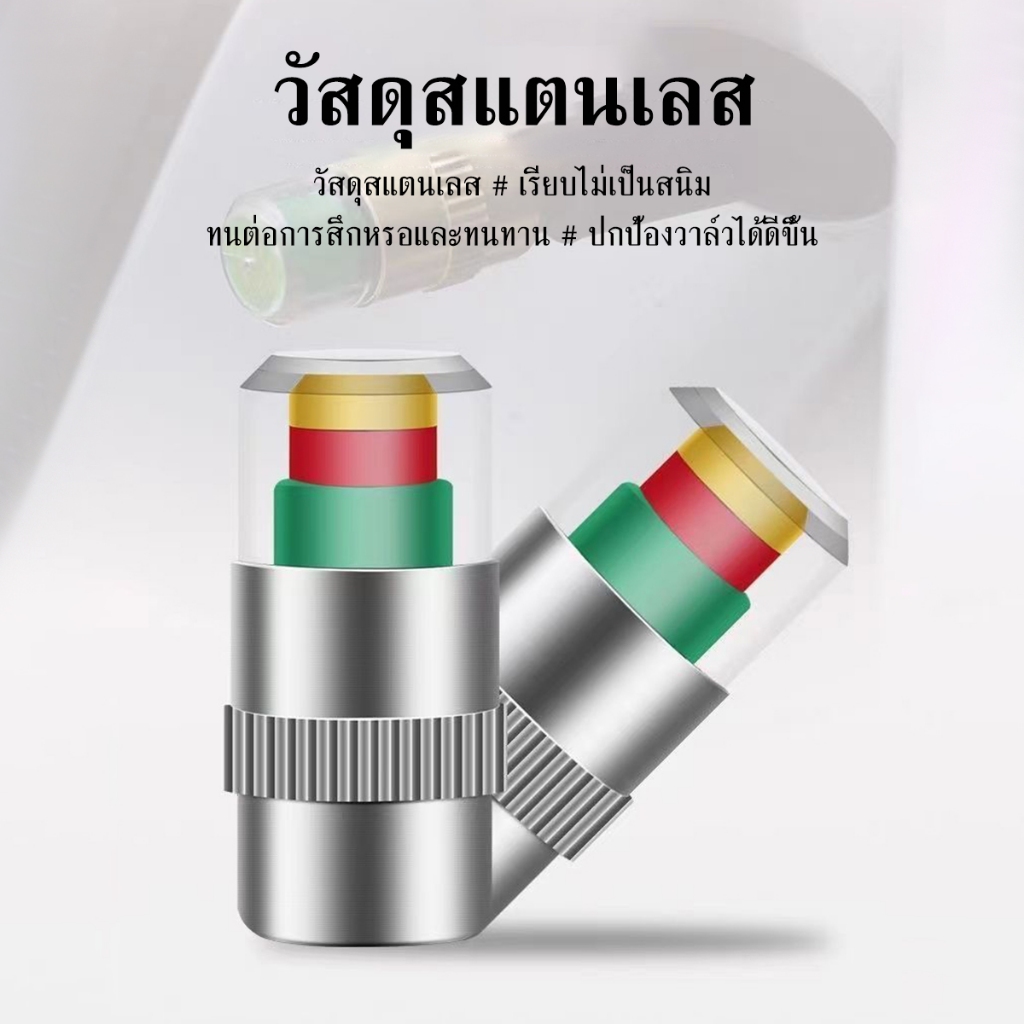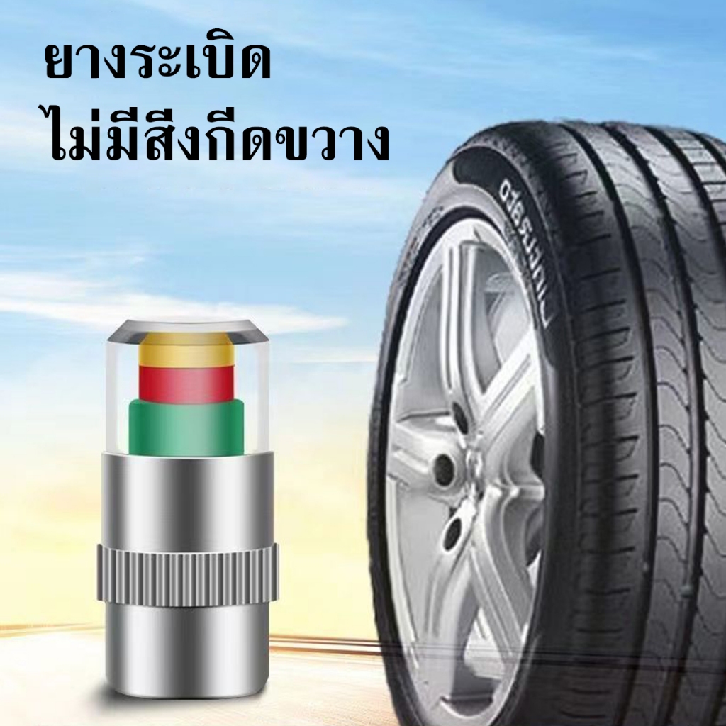 จุ๊บลมยาง จุกปิดลมยางรถยนต์ 4ชิ้น วัดความดันลมได้ในตัว มีสีแจ้งเตือนสถานะลมยาง ใช้ได้ทั้งรถจักรยาน มอเตอร์ไซค์ รถยนต