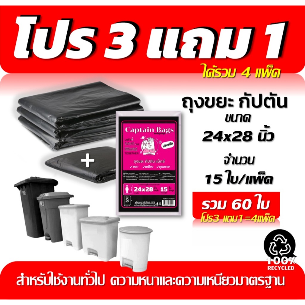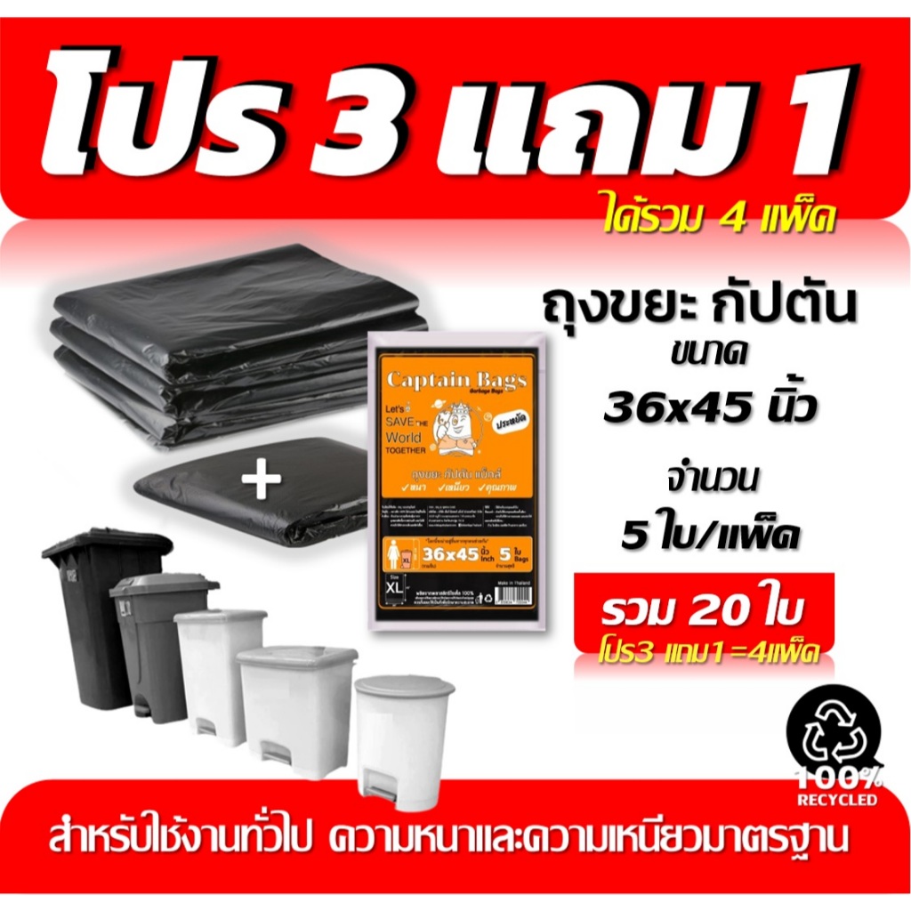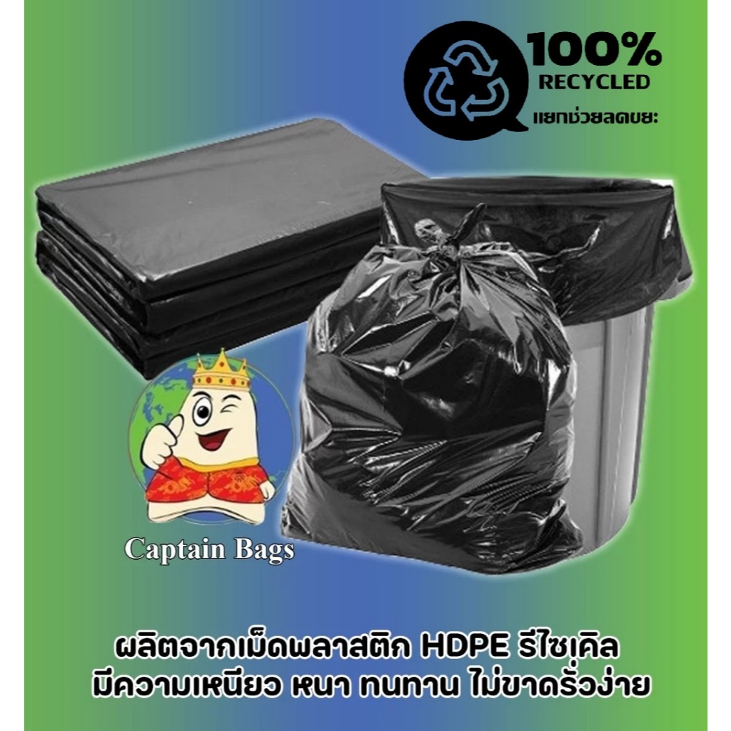 ถุงขยะ3แถม1(ได้4แพ็ค) ถุงขยะดำ ถุงขยะกัปตัน รีไซเคิล100% เนื้อเหนียว 5 ขนาดให้เลือก