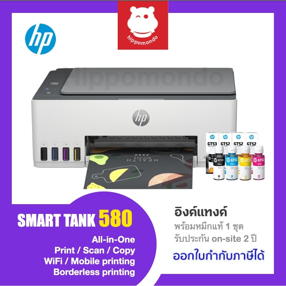 HP SMART TANK 580 ปริ้นเตอร์ Ink Tank All-in-One Wi-Fi พร้อมหมึกแท้ 1 ชุด รับประกันศูนย์ (on-site) 2 ปี
