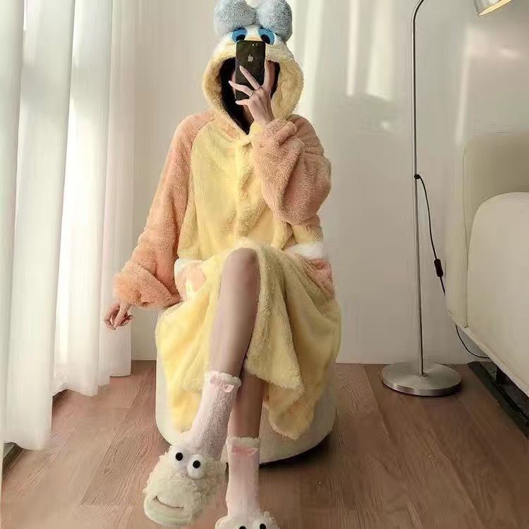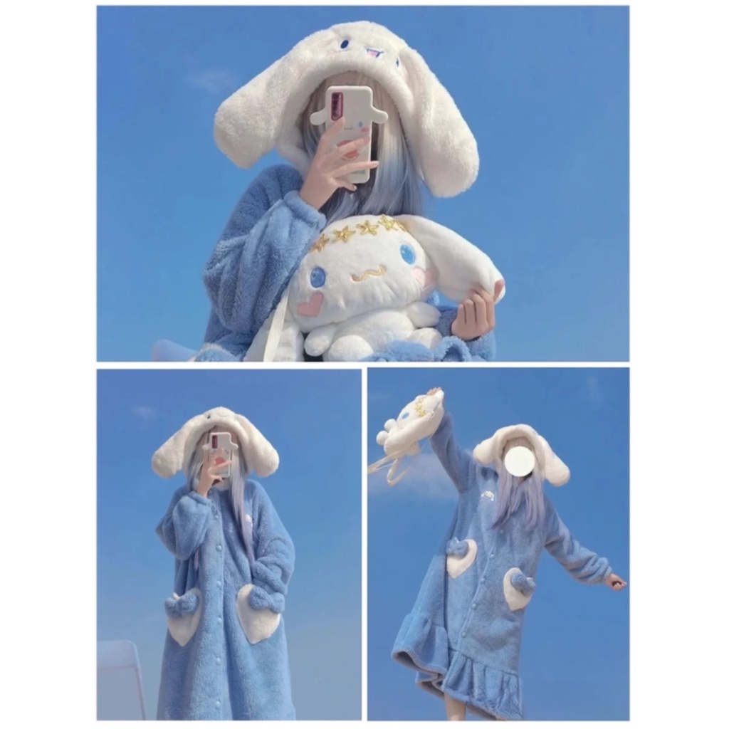 [จัดส่งทันที] การ์ตูนน่ารัก🎀อบเชยสุนัขชุดนอนสำหรับสตรีฤดูหนาวHooded Coral Velvetชุดนอนบ้านFurryชุดนอนสตรีSH1507