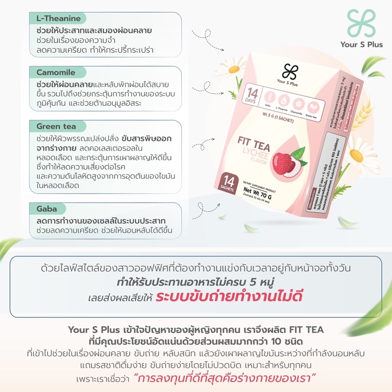 YOUR S PLUS - FIT TEA ชาดีท็อกซ์ ไม่ปวดบิด ตัวช่วยรีเซ็ตหุ่นพัง มีส่วนช่วยให้ หลับสนิท ผ่อนคลาย คลายเครียด
