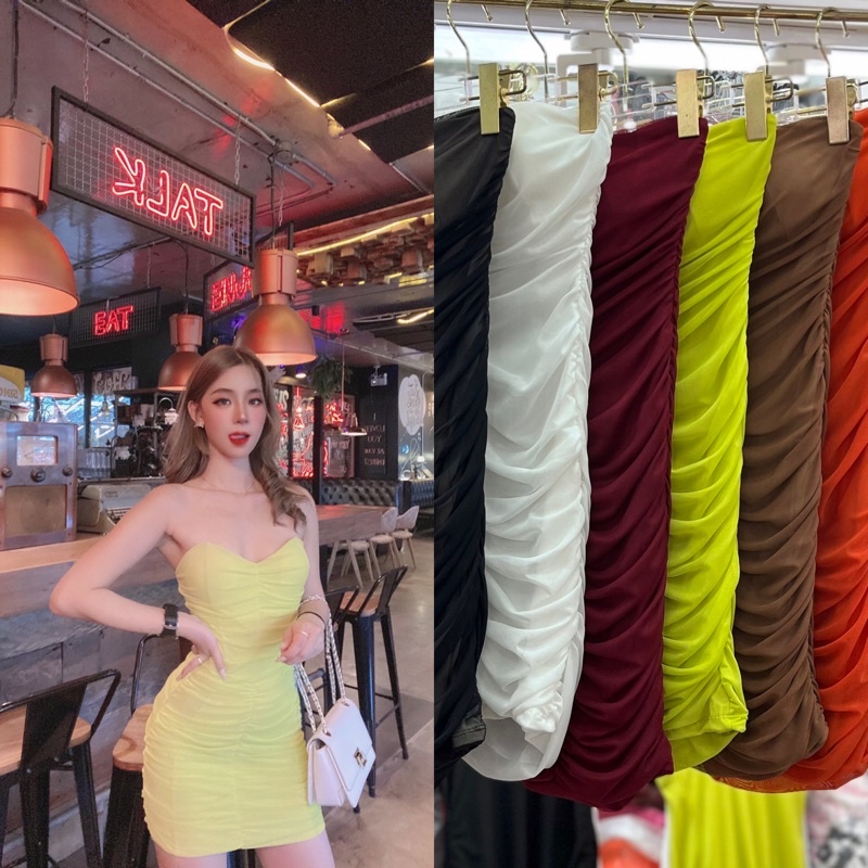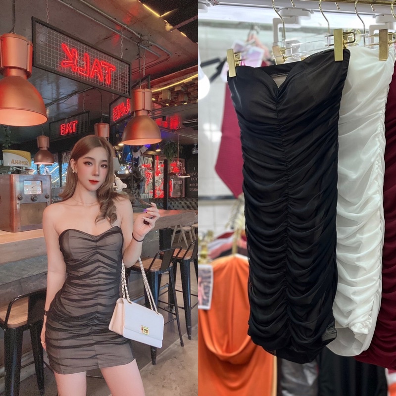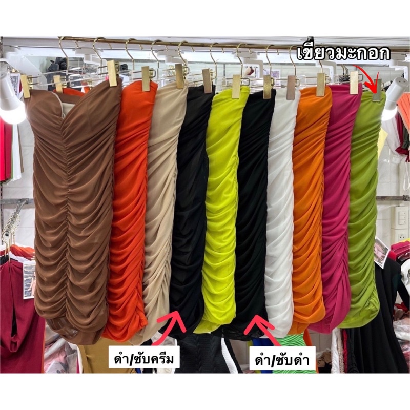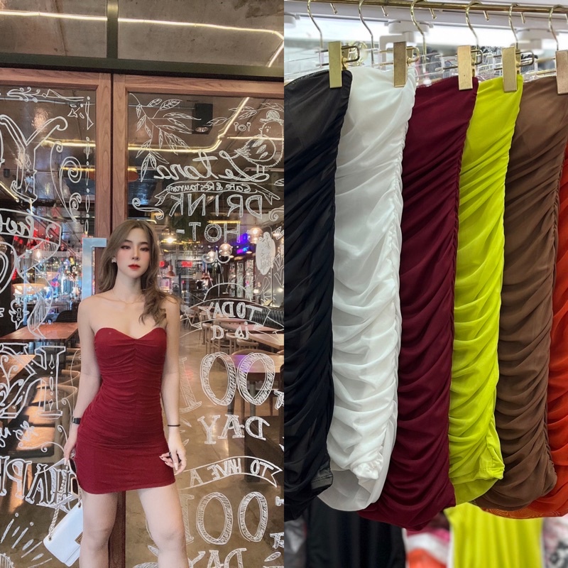 D259🔥เดรสเกาะอกสั้น เกาะอกออกงาน🔥เดรสกระโปรง เดรสกลางคืน 8 สี✨✅พร้อมส่ง🎄ชุดคริสต์มาส