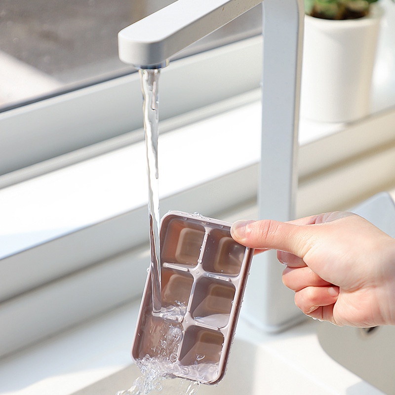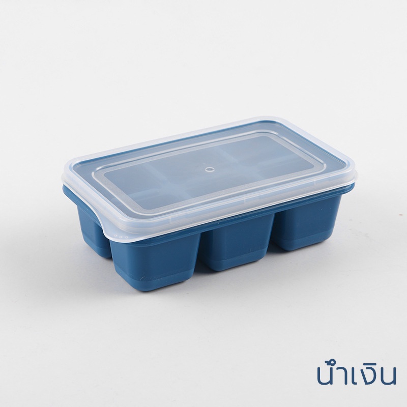 แม่พิมพ์น้ำแข็ง ถาดน้ำแข็ 6 กริด สี่เหลี่ยม 3 สี Icemaker ถาดน้ำแข็ง ซิลิโคนเกรดคุณภาพยืดหยุ่นสูง มีฝาพลาสติก